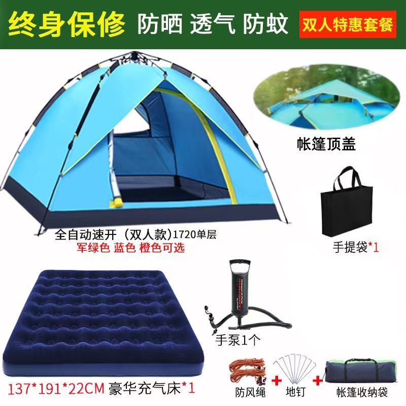 텐트 야외 캠핑 3-4-2 완전 자동 두 배 두꺼운 선 스크린 및 방비 야외 가족 패키지 텐트스토어 가기