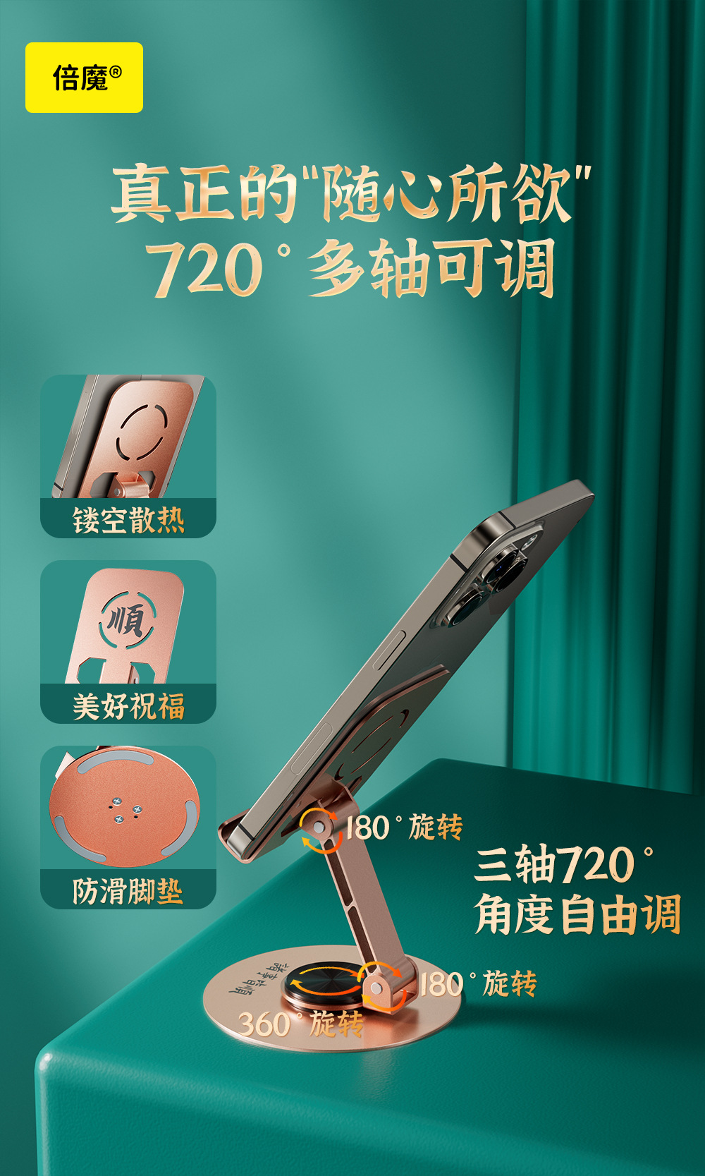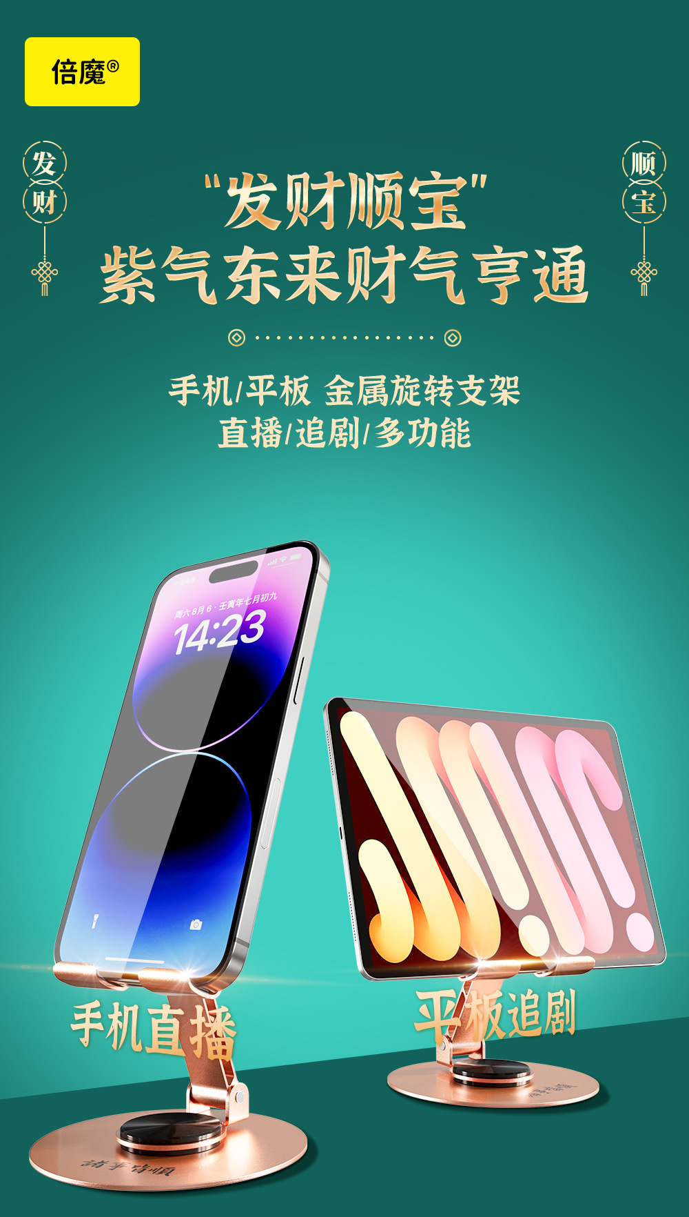 [Fortune Shun Bao] 더블 매직 풀 메탈 회전 휴대 전화 브래킷 태블릿 노트북 라이브 데스크탑 브래킷.스토어 가기