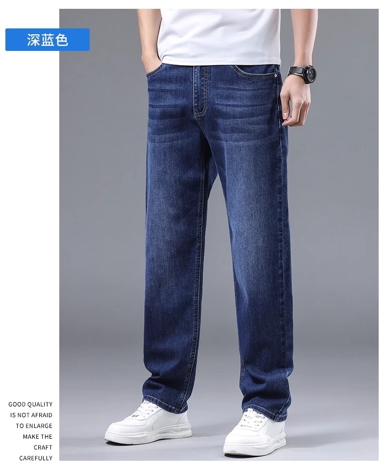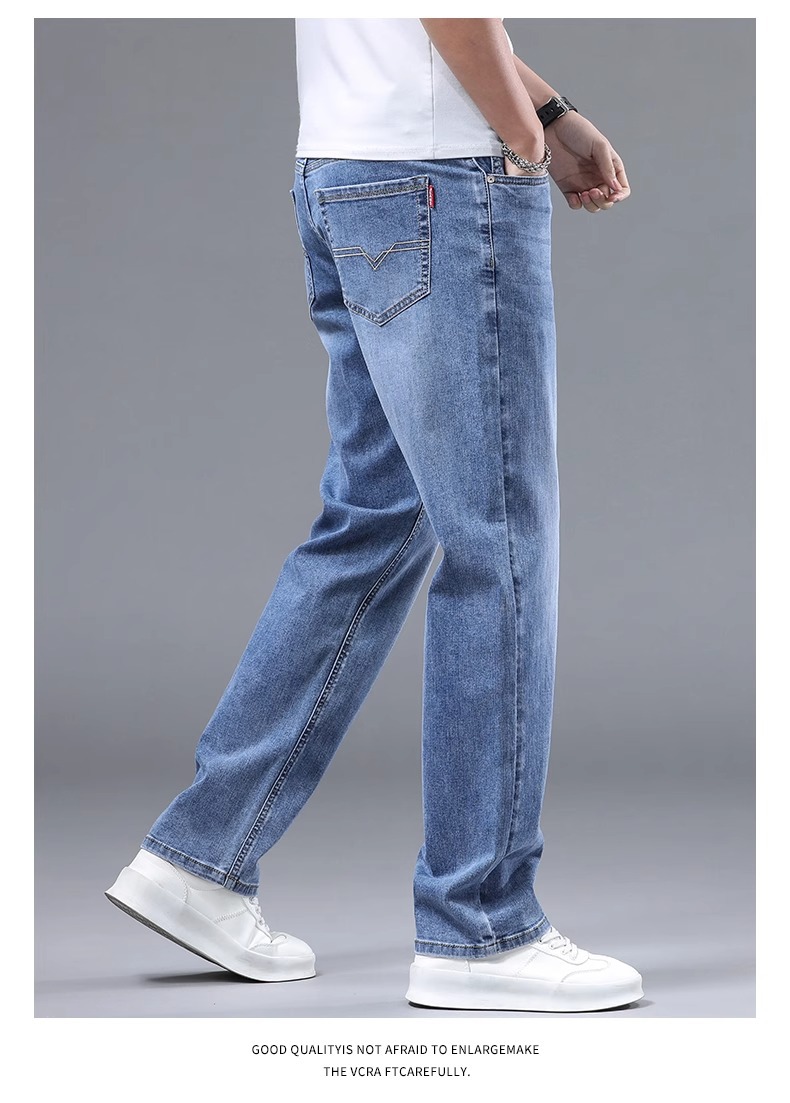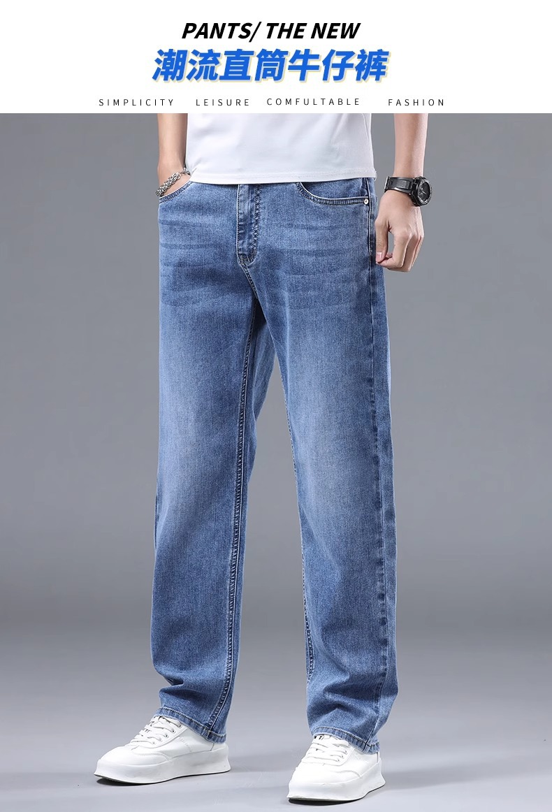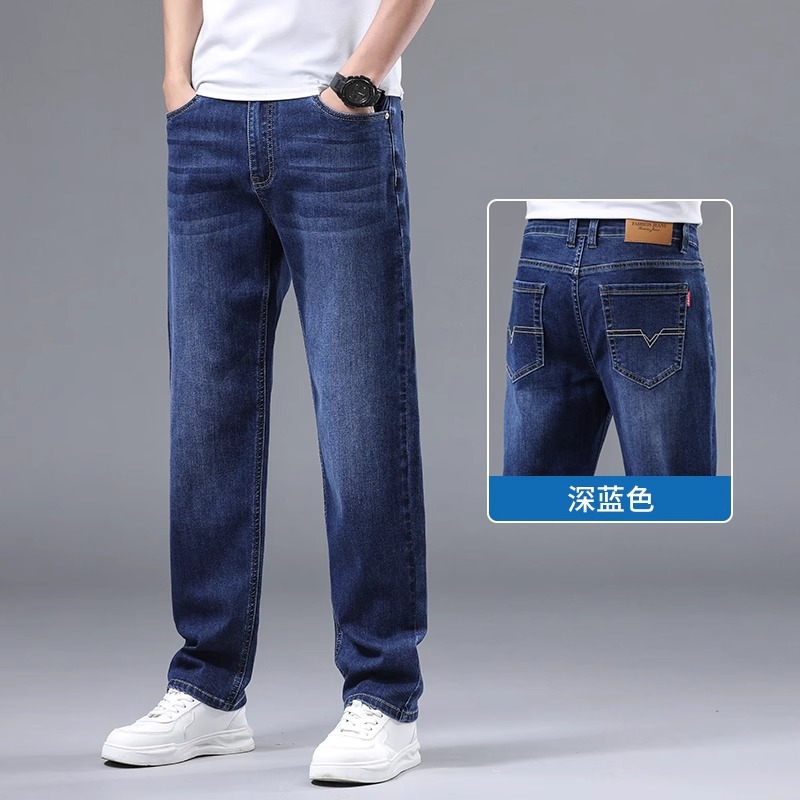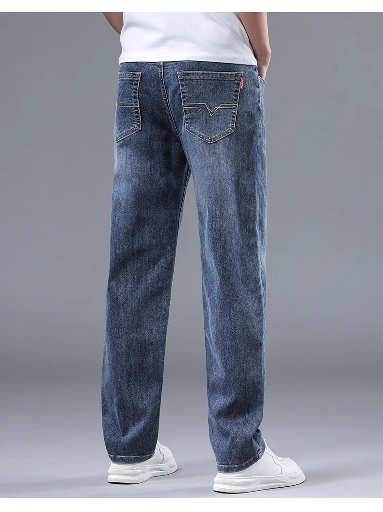 고급 워싱 블루 데님 남성용 2025 봄 가을 신상 루즈핏 스트레이트 캐주얼 신축성 긴바지스토어 가기