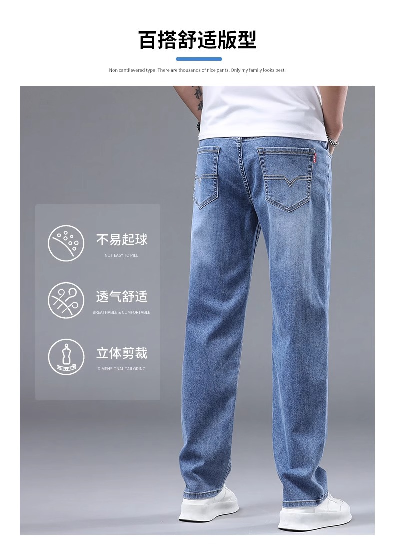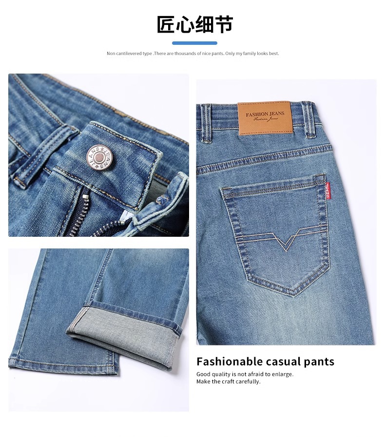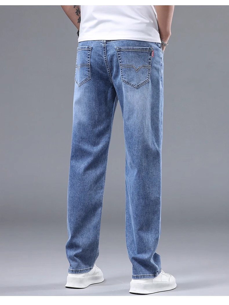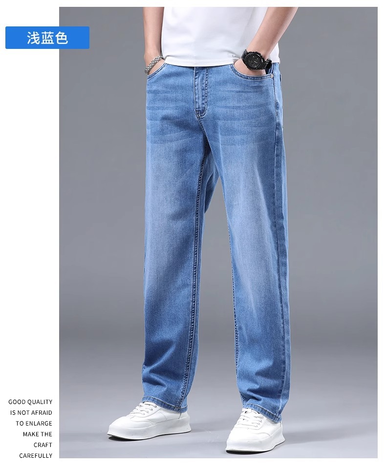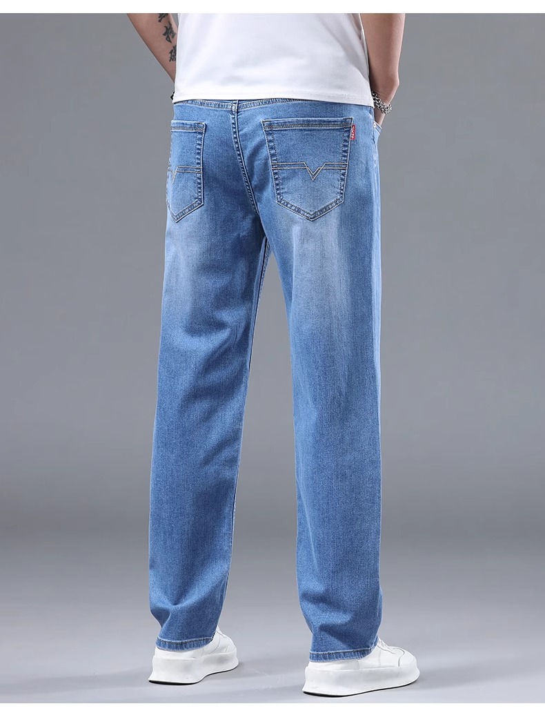 고급 워싱 블루 데님 남성용 2025 봄 가을 신상 루즈핏 스트레이트 캐주얼 신축성 긴바지스토어 가기