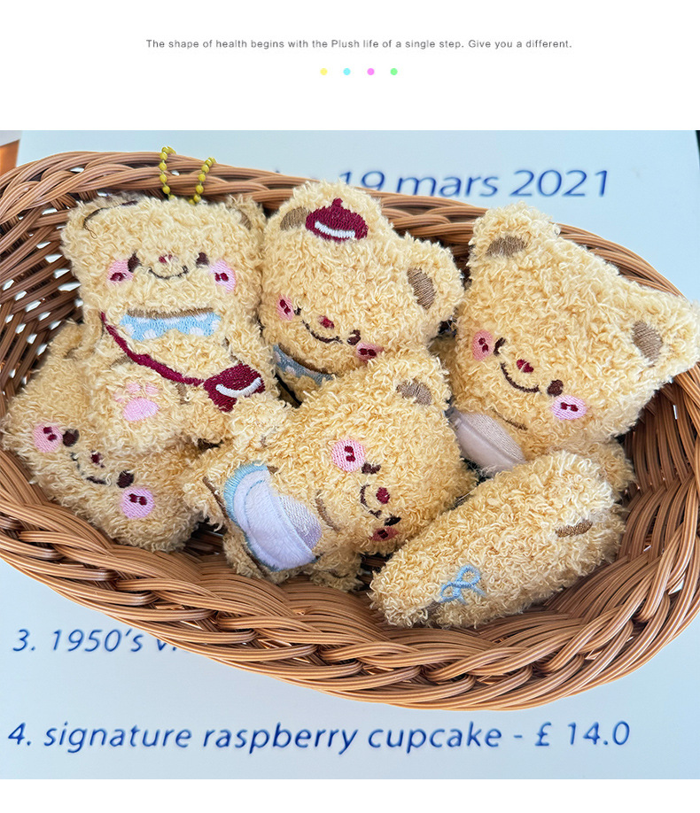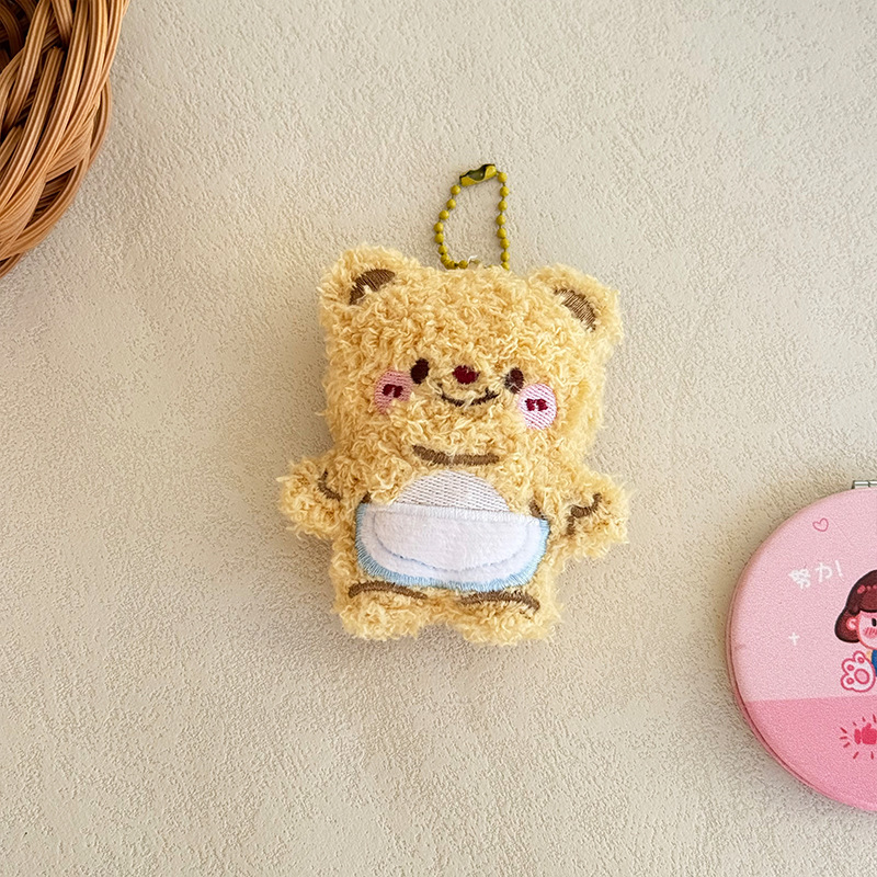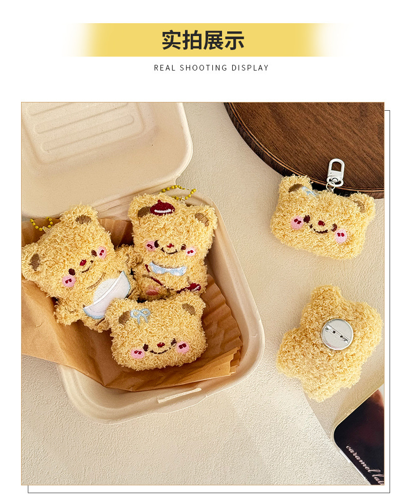귀여운 만화 봉제 버터 곱슬 머리 보석 배낭 곰 브로치 액세서리 가방 소녀 심장 키 체인 선물스토어 가기