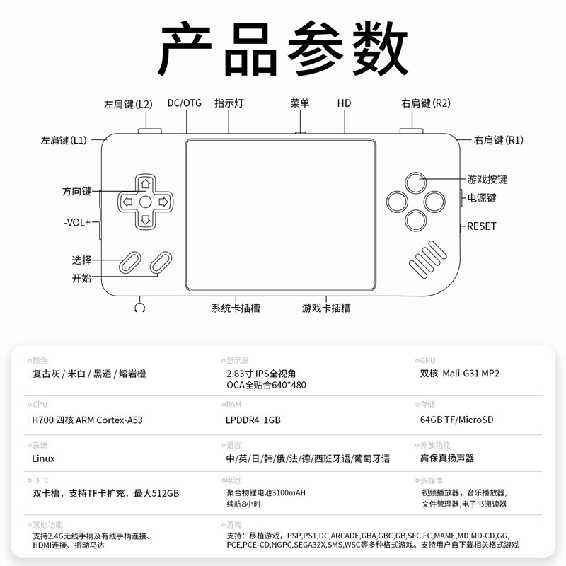 AMPOWN RG28XX 크로스 국경 휴대용 레트로 DC 게임 기계 멀티미디어 휴대용 향수 아케이드 PSP스토어 가기