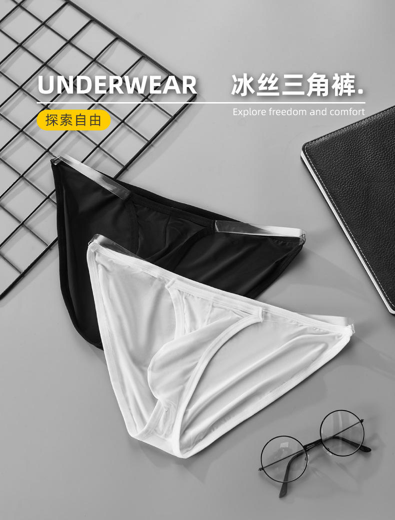 GTOPX MAN 남성용 투명 벨트 맞춤형 아이스 실크 얇은 U 볼록 섹시한 낮은 허리 크로스 보더 브리프 속옷