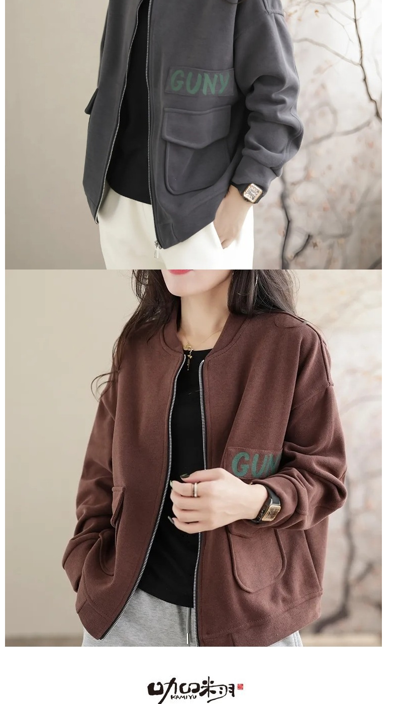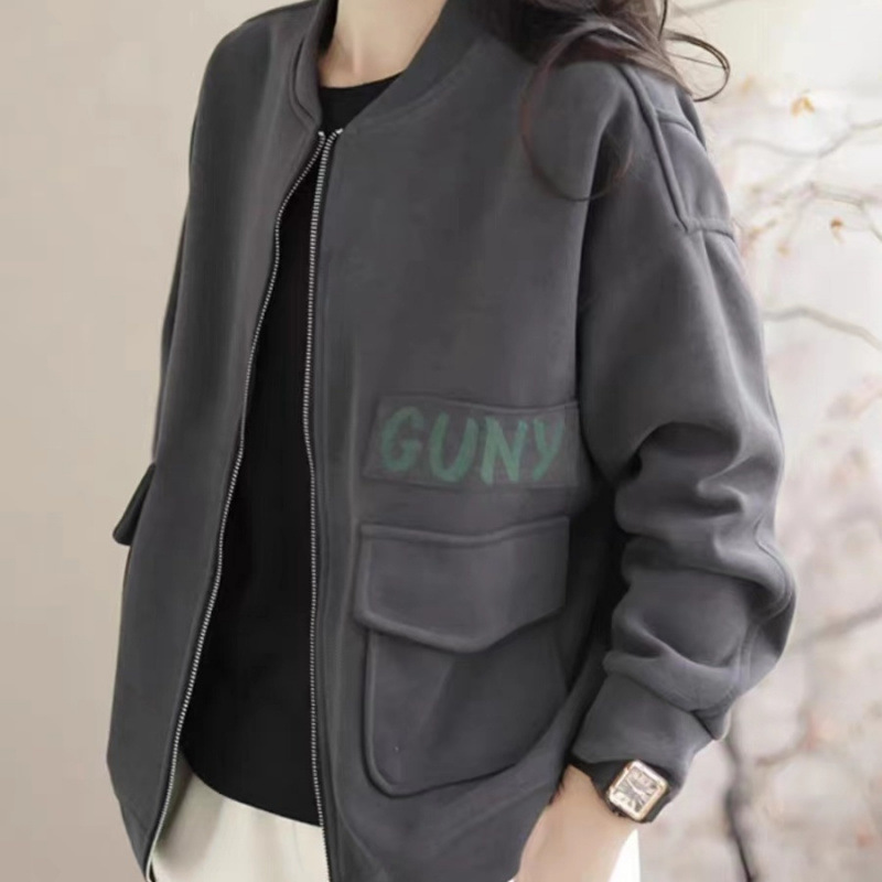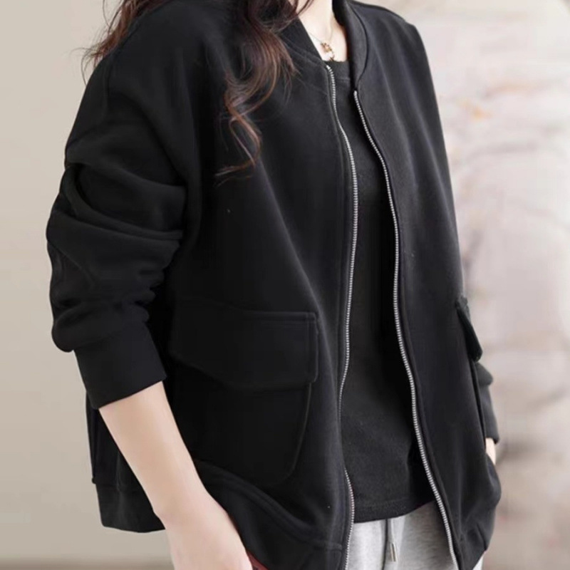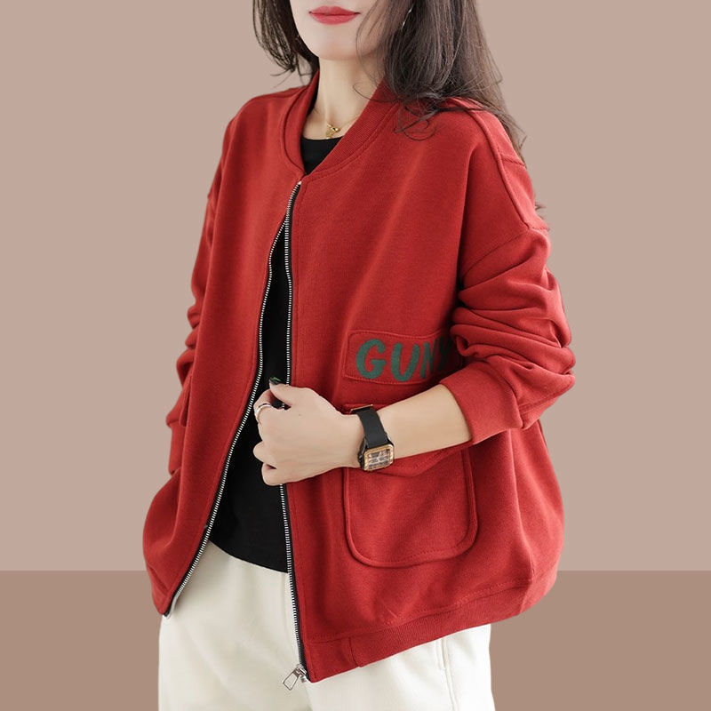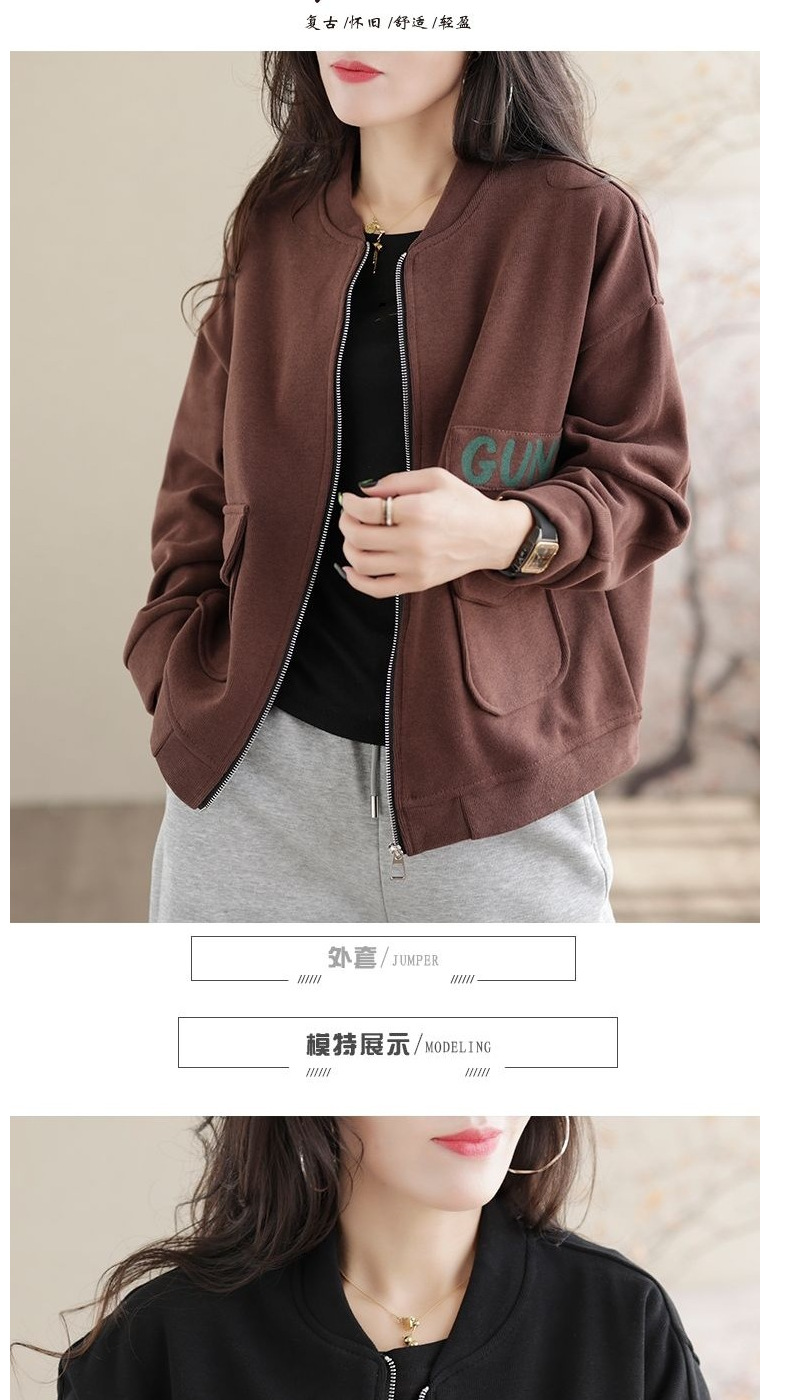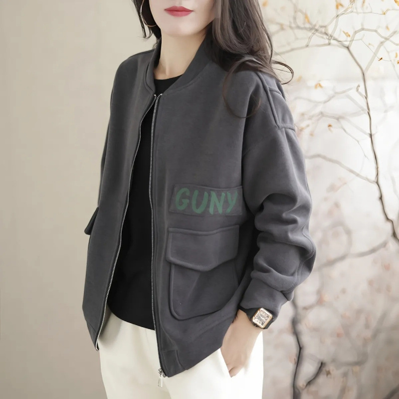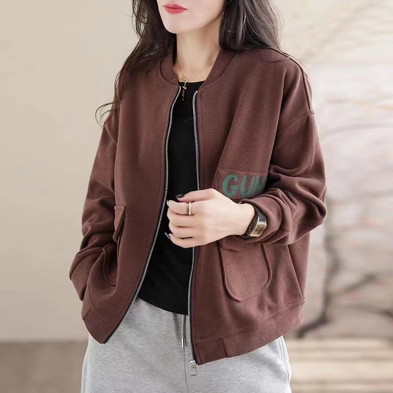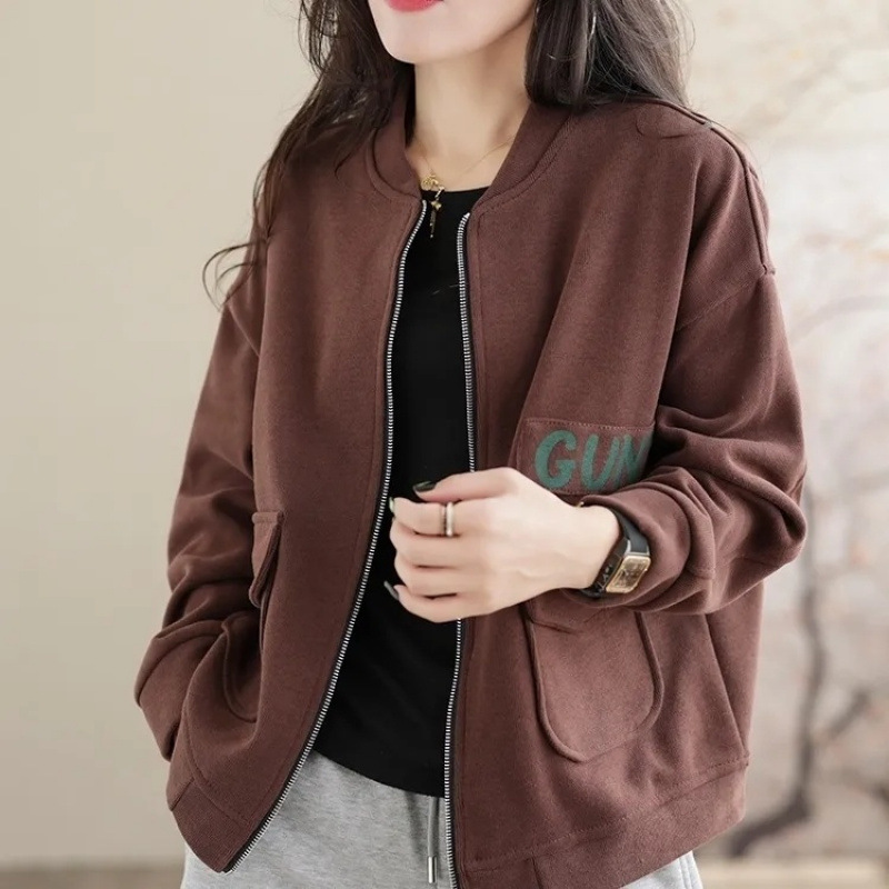 봄과 가을 새로운 여성 짧은 코트 스웨트 셔츠 카디건 지퍼 야구 재킷 세련되고 다재다능한스토어 가기