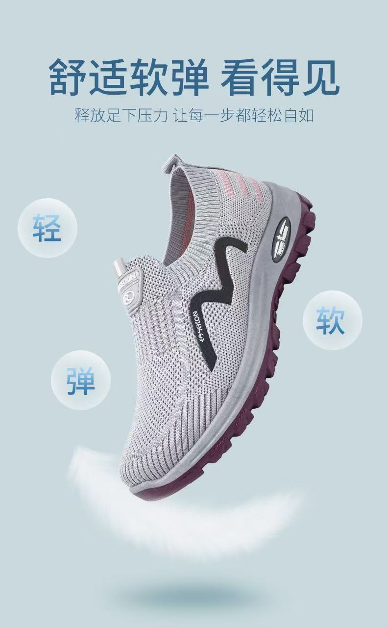 [소프트 솔 플라이 짠 메쉬 신발] 여성용 미끄럼 방지 소프트 솔 플라이 짠 통기성 스포츠 레저 워킹 슈즈 메쉬 슈즈