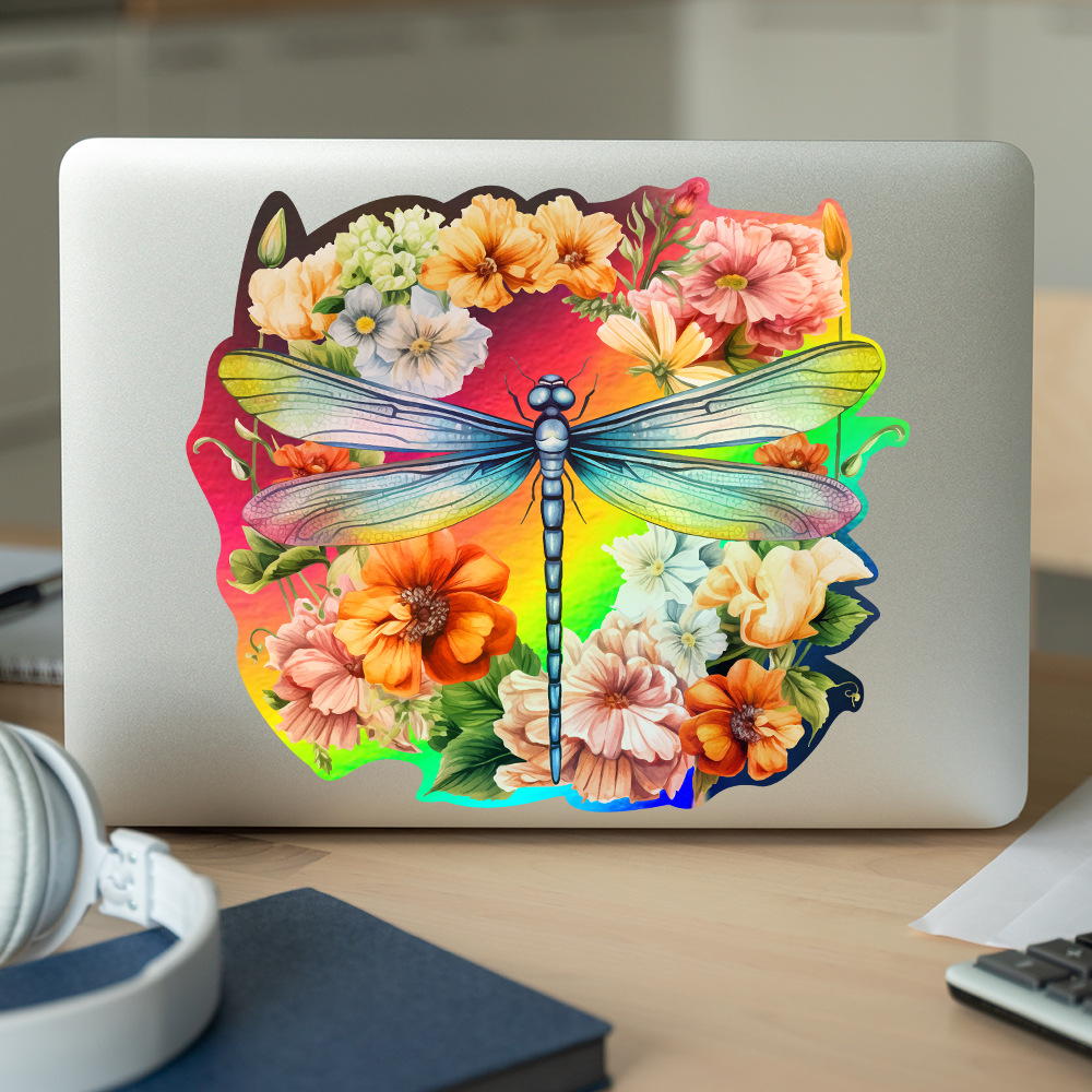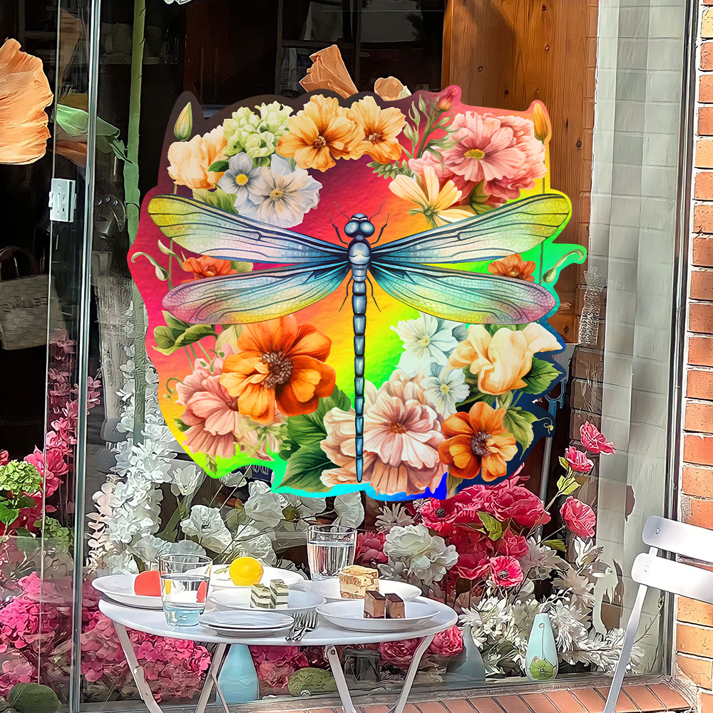 Yiyao LS3302 창조적 인 꽃 곤충 잠자리 레이저 필름 반사 색상 발코니 유리 스티커 다색 벽 스티커스토어 가기