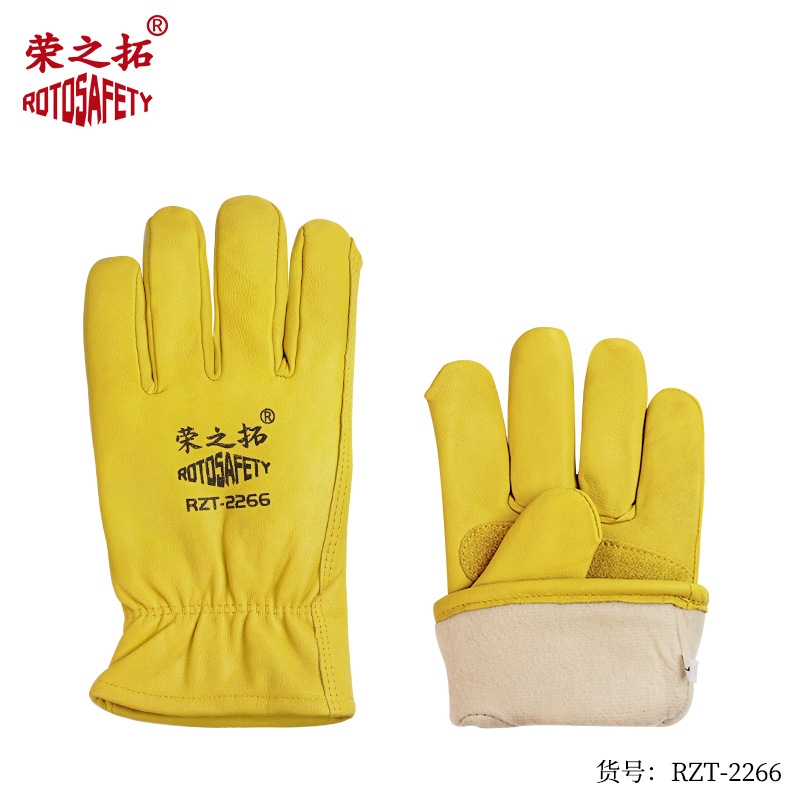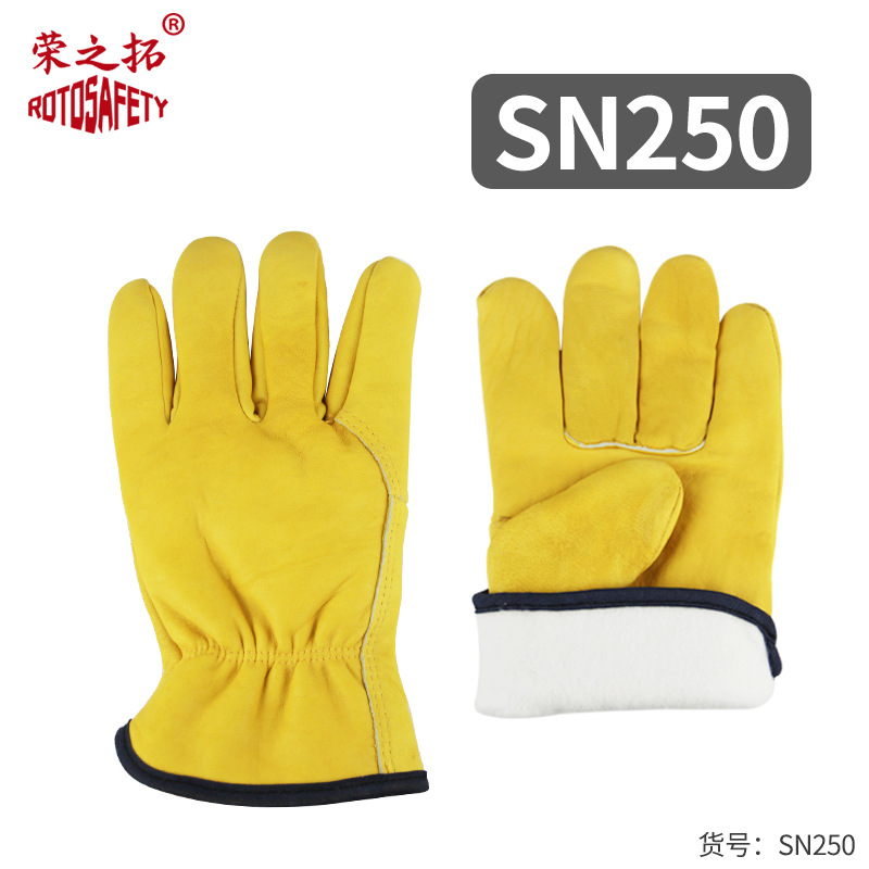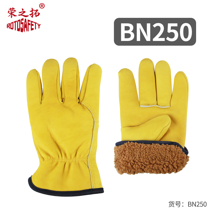 • BN250 노란색 면 양가죽 장갑(의류 벨벳 안감)