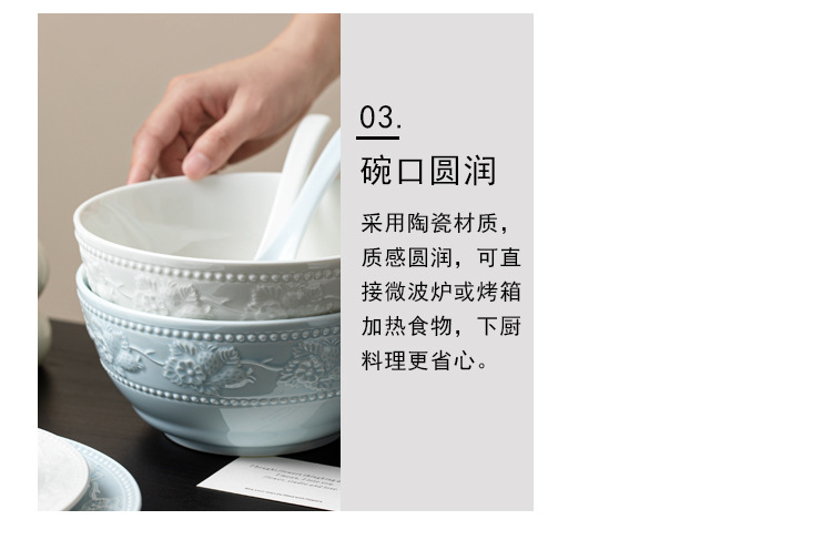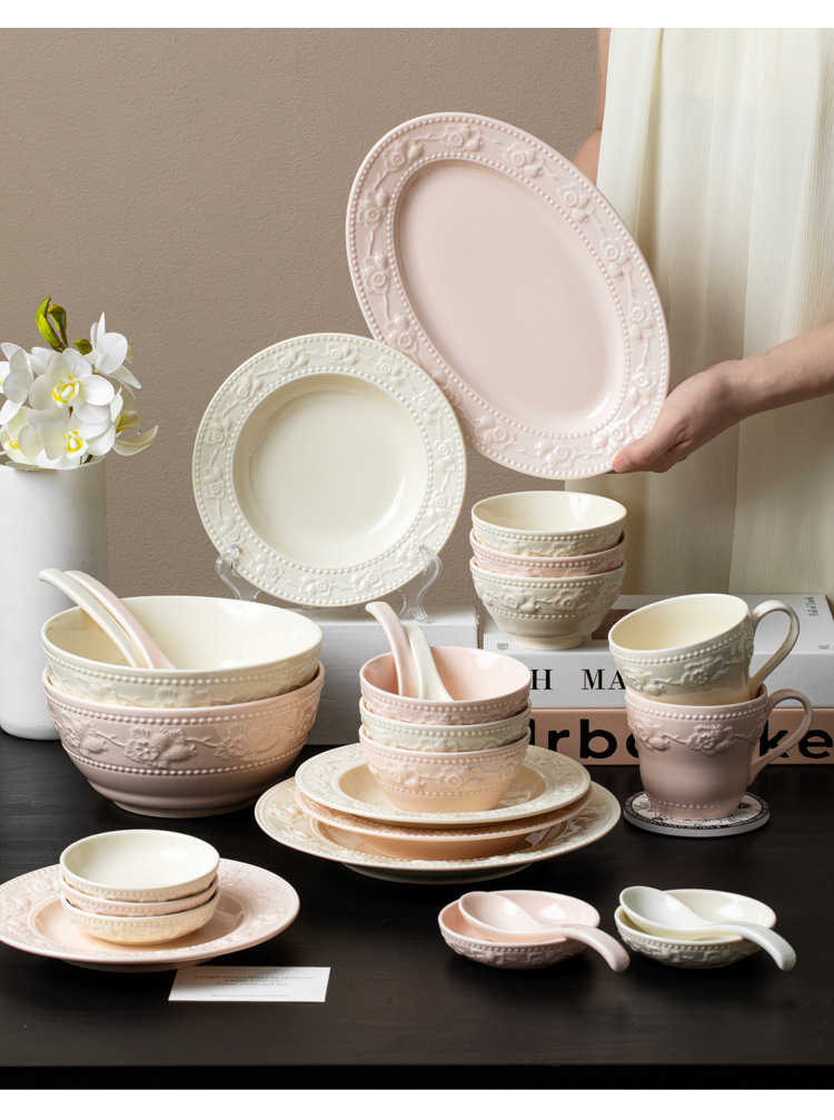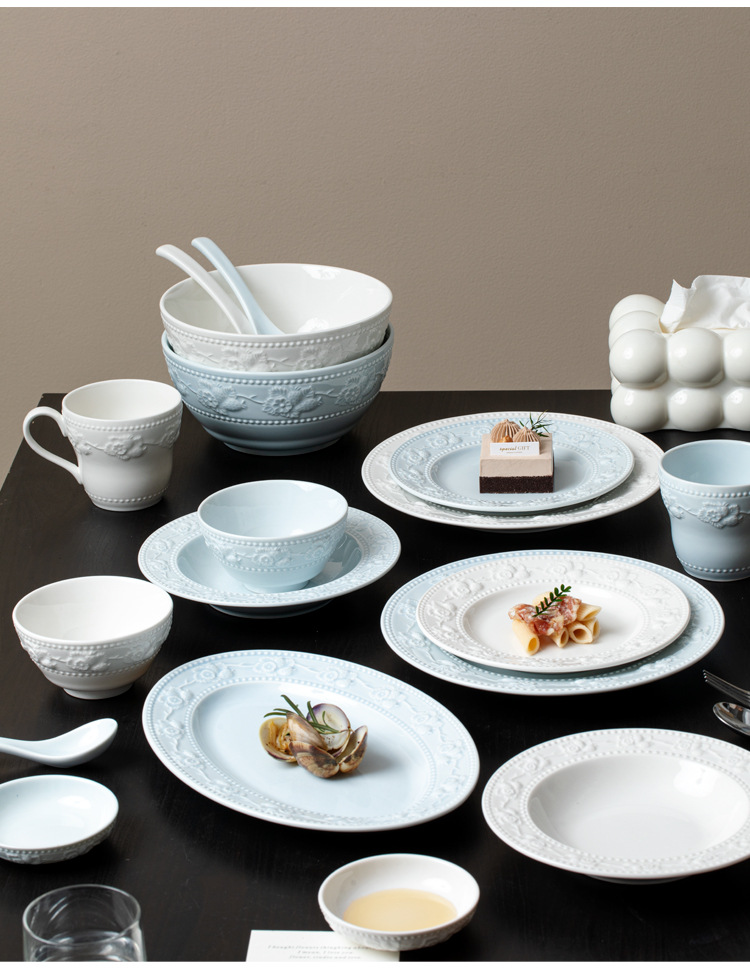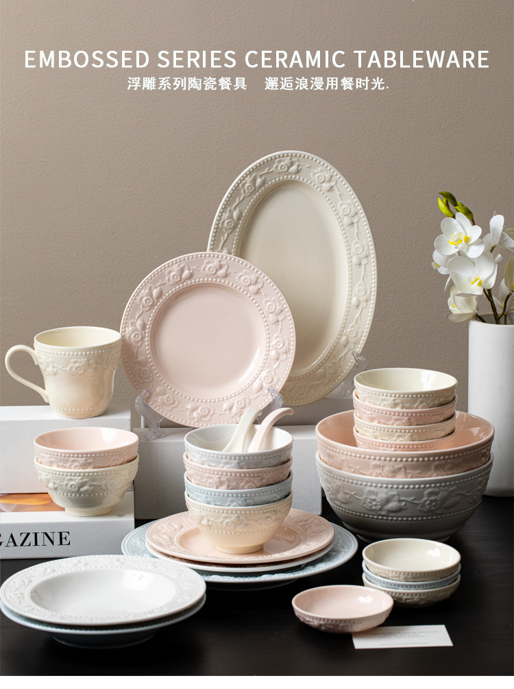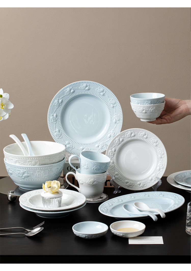 세라믹 식기 클래식 라이트 럭셔리 양각 그릇 가정용 쌀 수프 그릇 컵 조합 센스 요리 세트