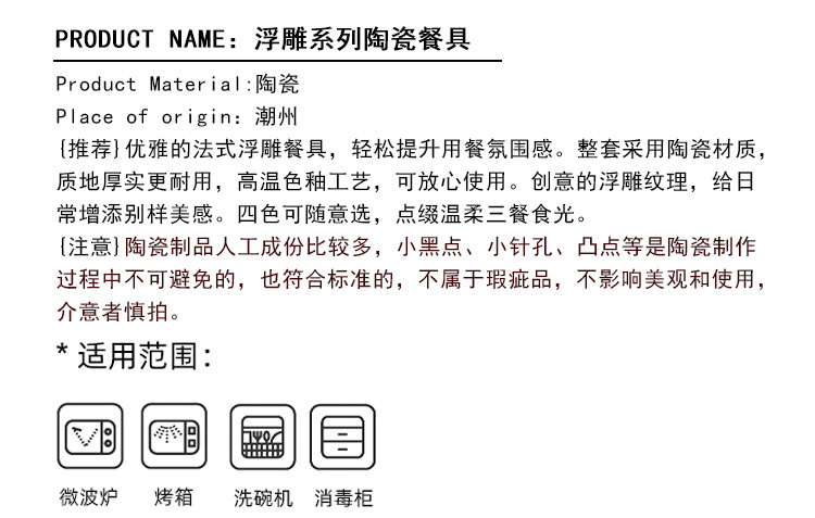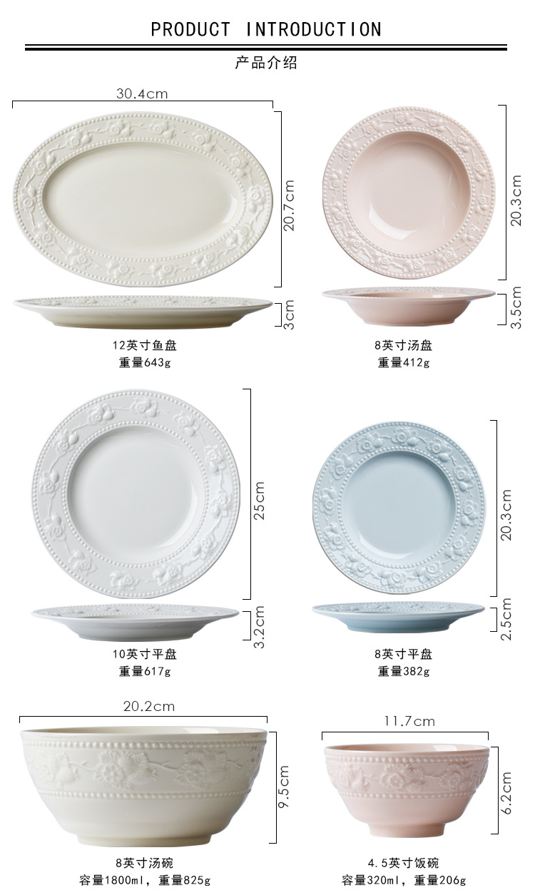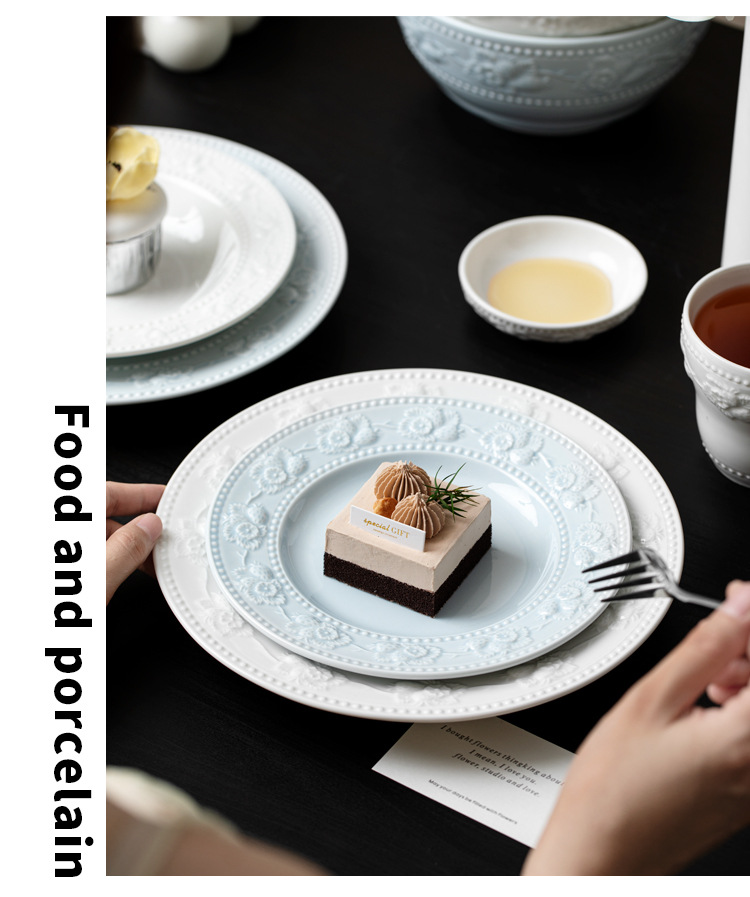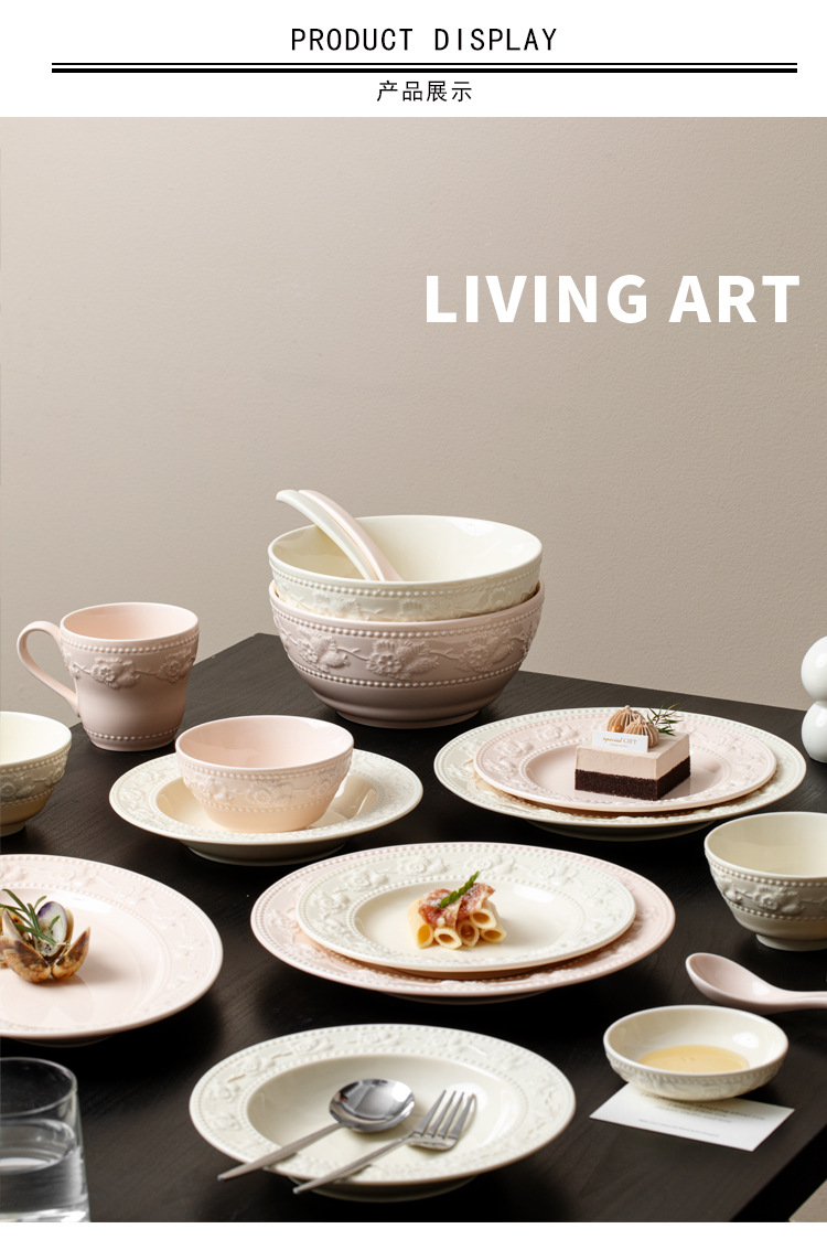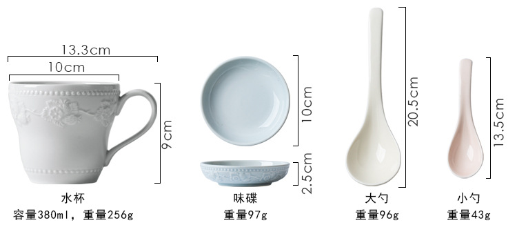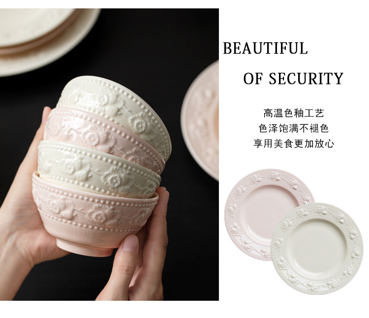 세라믹 식기 클래식 라이트 럭셔리 양각 그릇 가정용 쌀 수프 그릇 컵 조합 센스 요리 세트