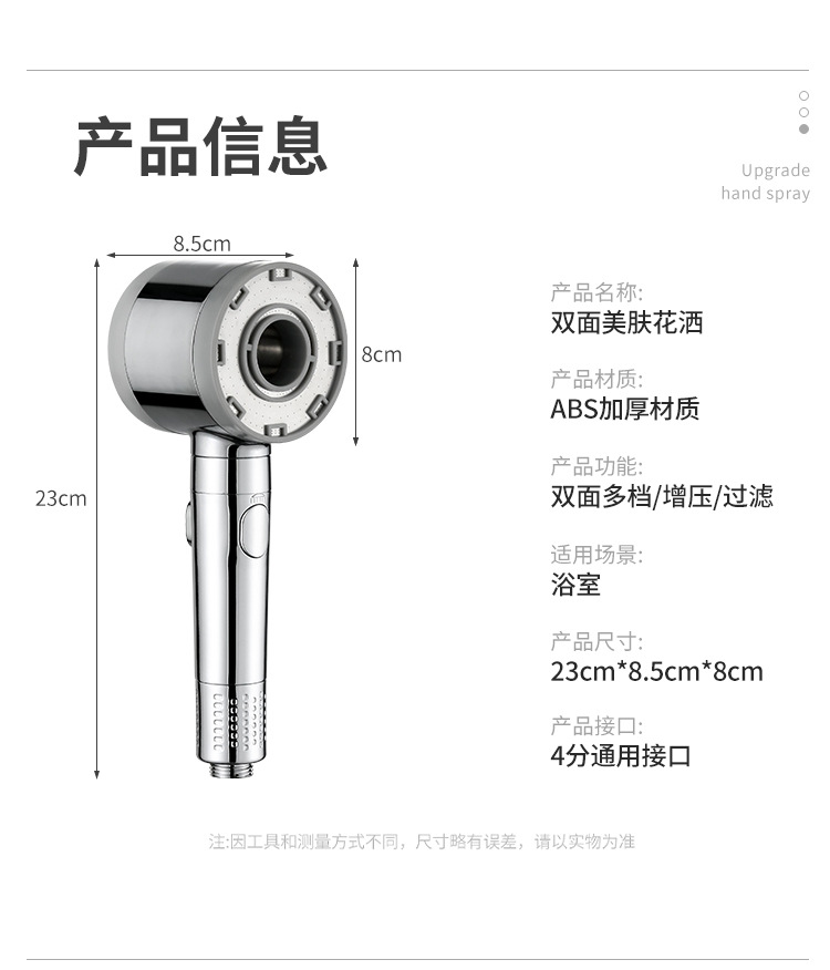 • 미러 실버 양면 슈퍼차저 샤워 헤드