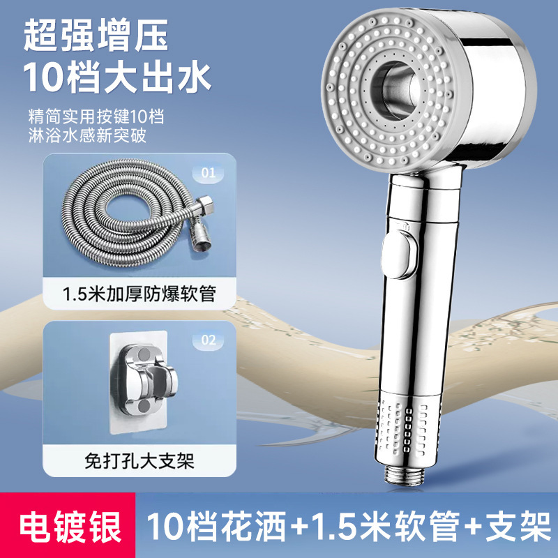 • 미러 실버 양면 부스터 샤워 + 1.5m 샤워 파이프 + 후크