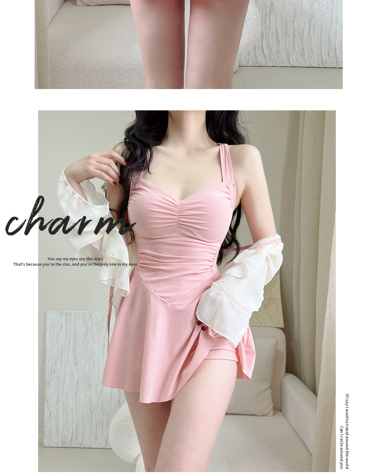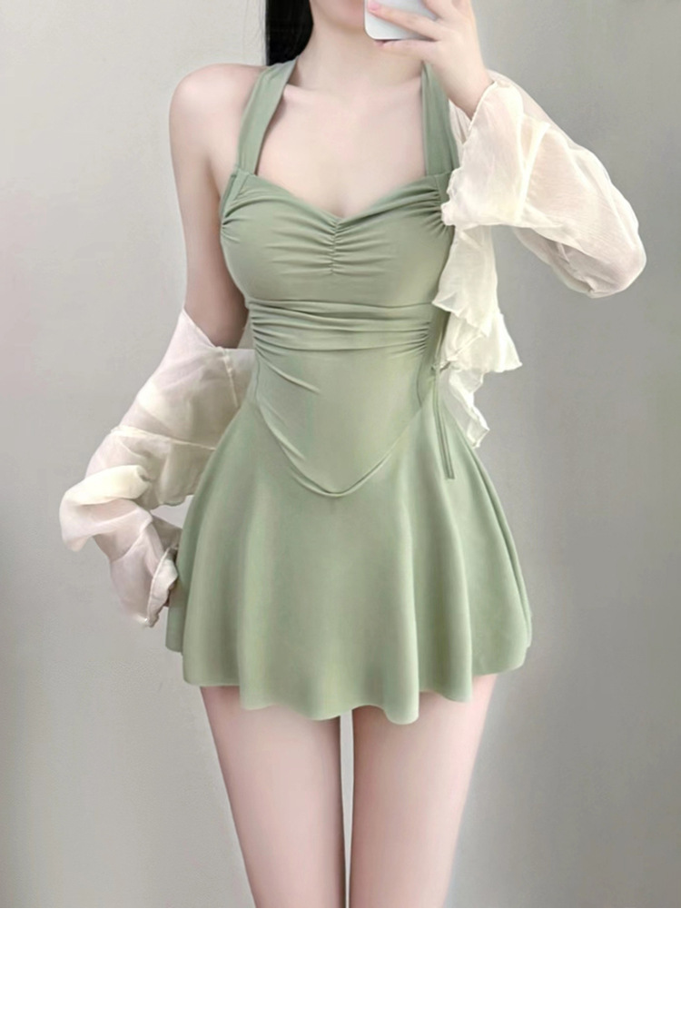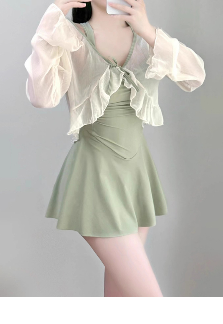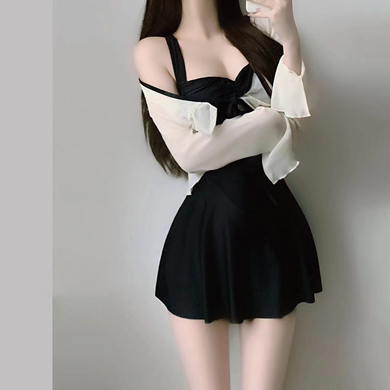 수영복 여성 투피스 온천 육체, 보수적 인 높은 수준의 긴 소매 선 스크린 수영복 슬리밍 원피스 스커트스토어 가기