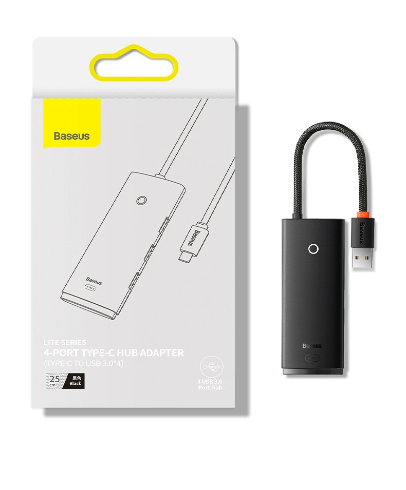 • 라이트 엔조이 시리즈 Type-C - USB3.0*4 허브 25cm 블랙