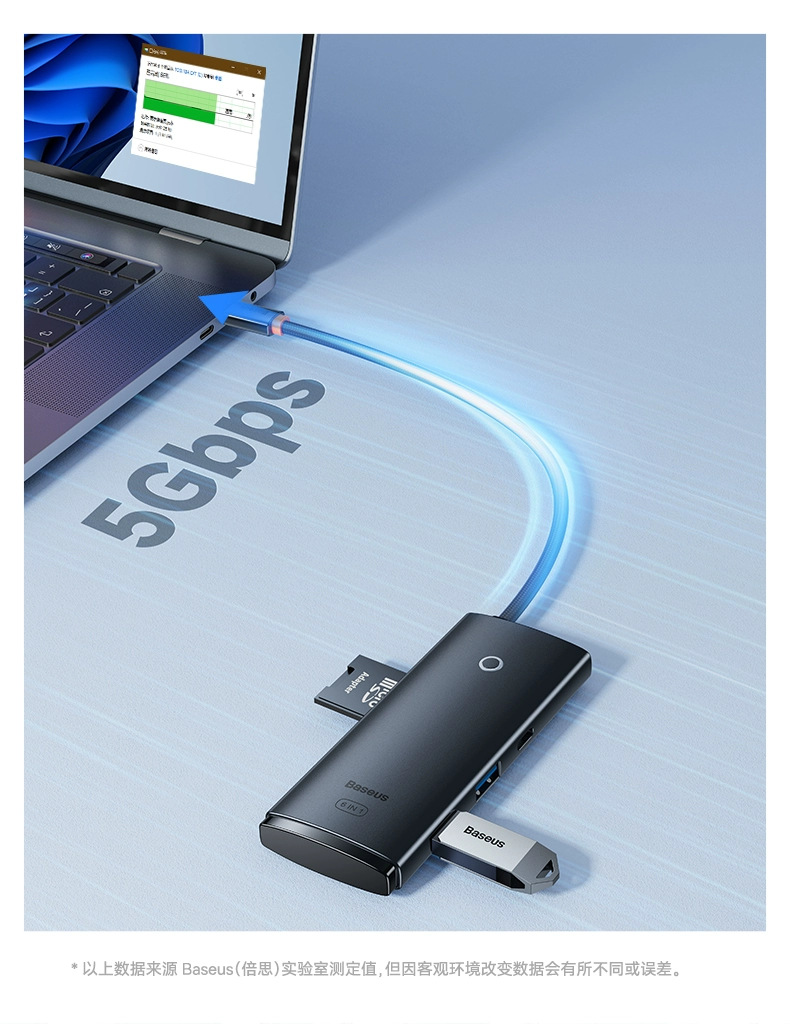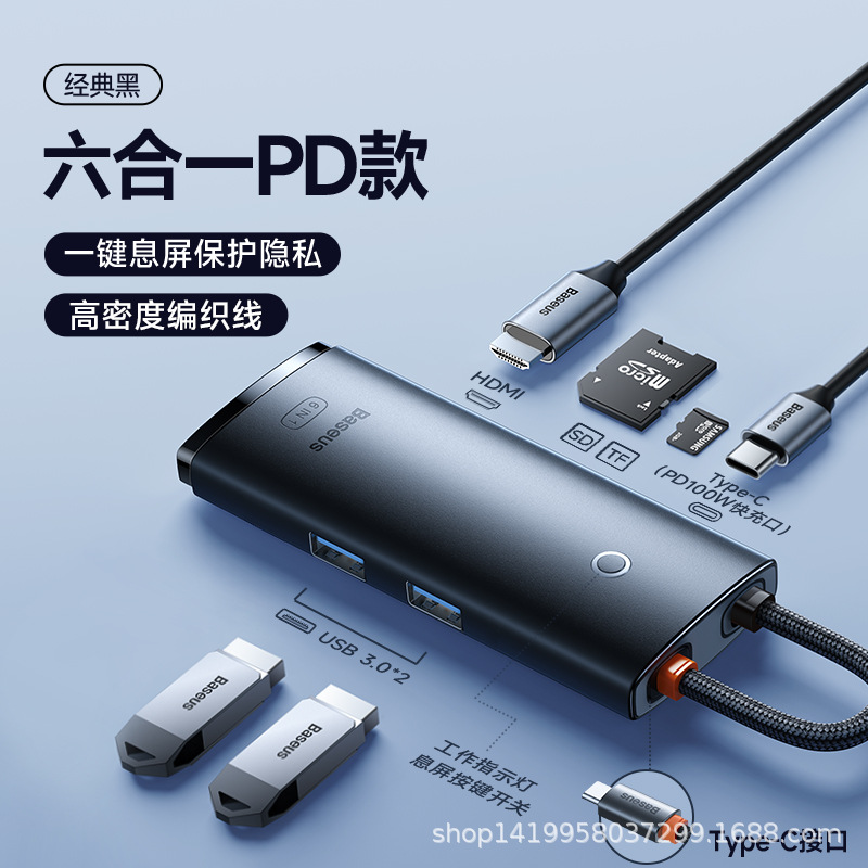 • 6-in-1 HUB 확장 도크 데이터 버전 (HDMI+USB3.0*2+Type-C 데이터+SD/TF)을 간편하게 즐기세요.