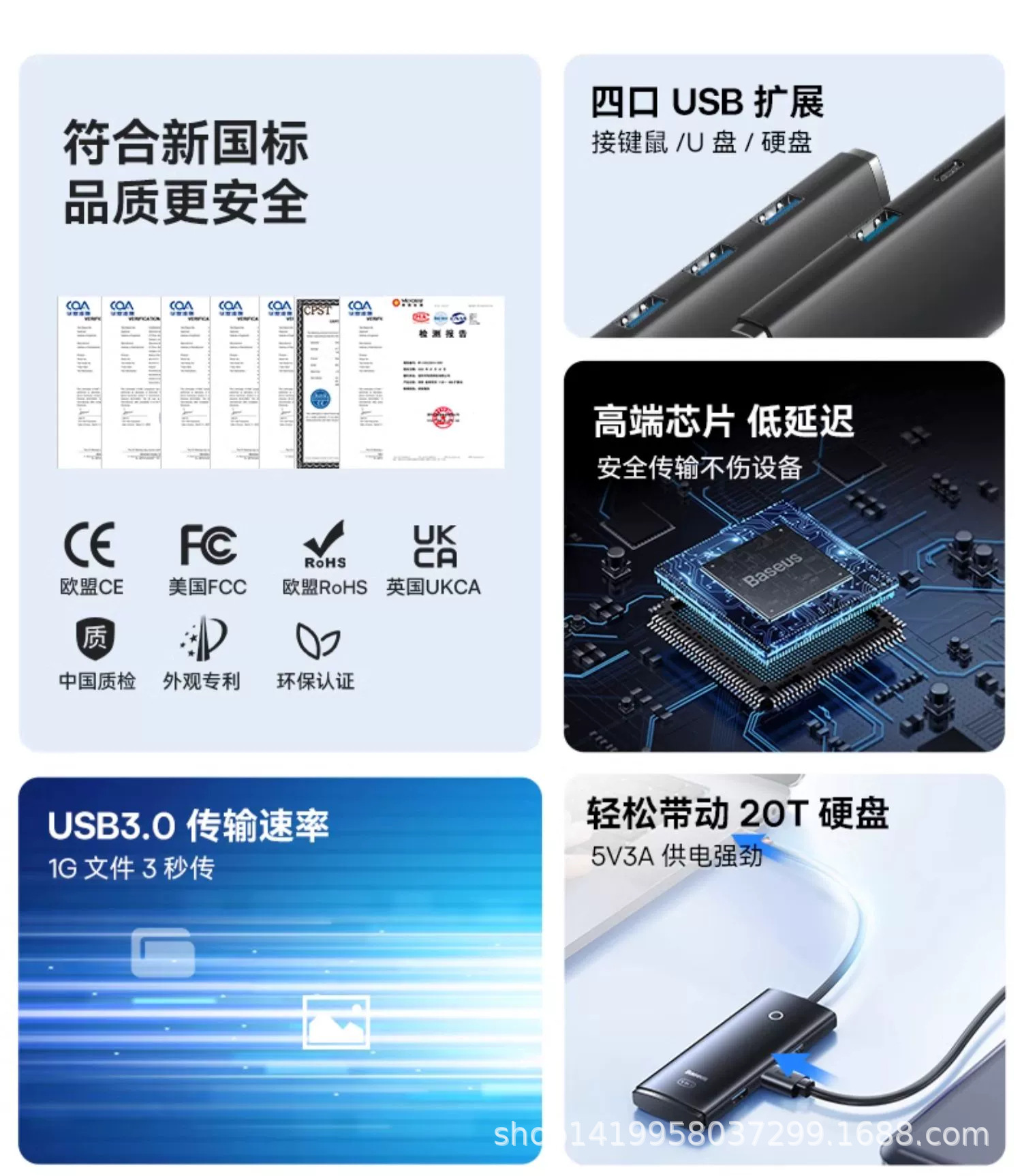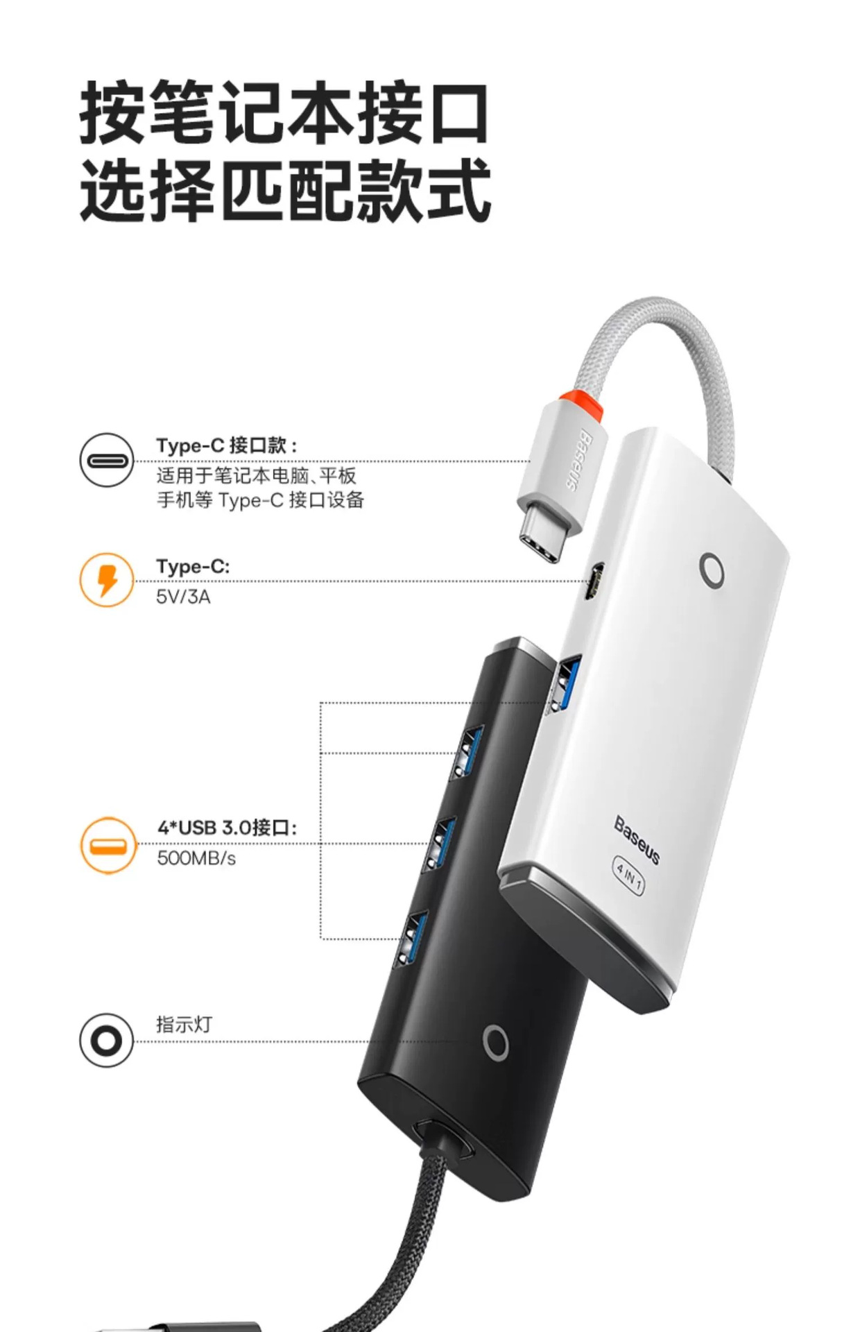 Beisi usb extender typec 확장 도크 플러그 멀티 포트 허브 확장 코드 3.0 세트 스플리터 네트워크 케이블 다중 연결스토어 가기
