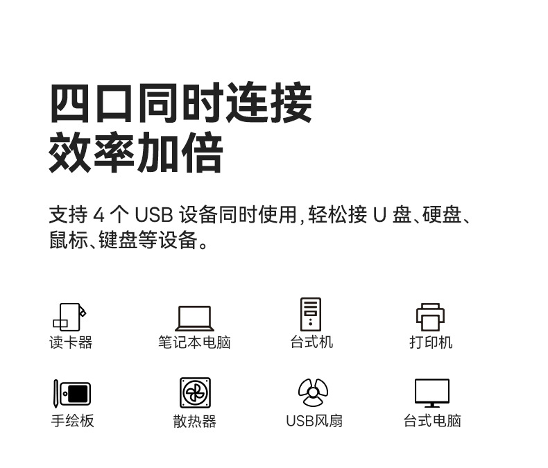 • 라이트 엔조이 시리즈 Type-C - USB3.0*4 허브 25cm 화이트