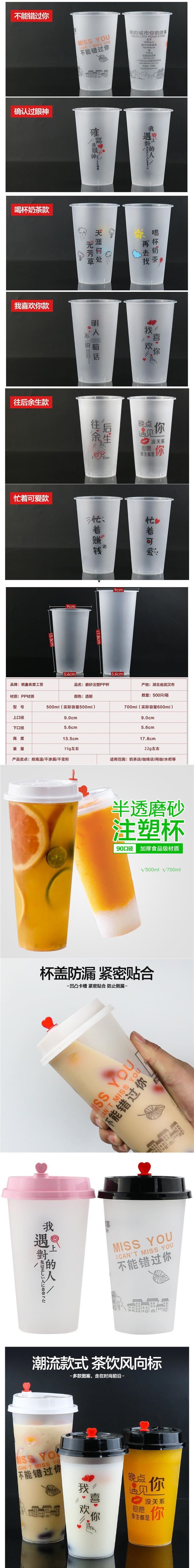 성 두꺼운 젖빛 주입 성형 우유 차 컵 주스 음료 플라스틱 우유 차 컵 500ml700ml 전체 상자스토어 가기