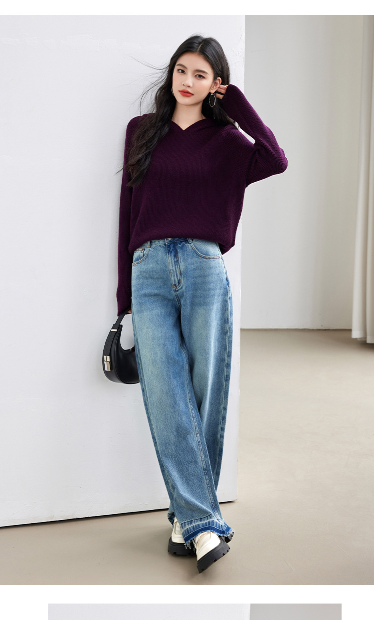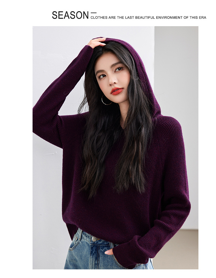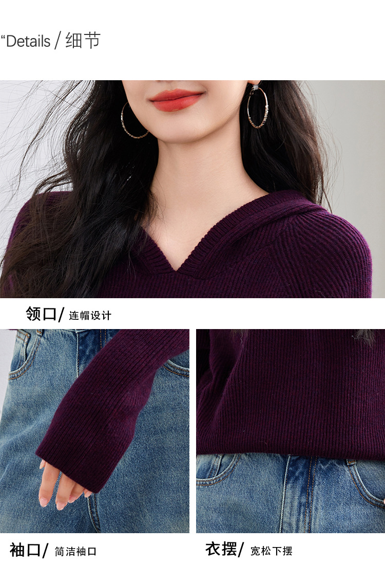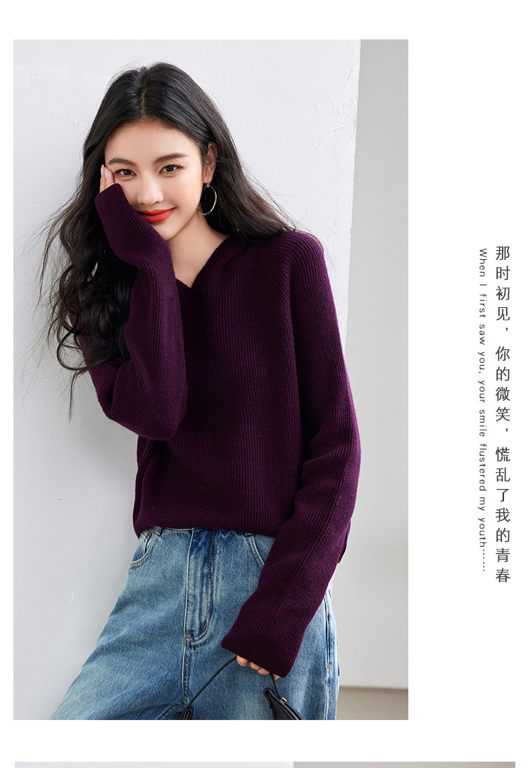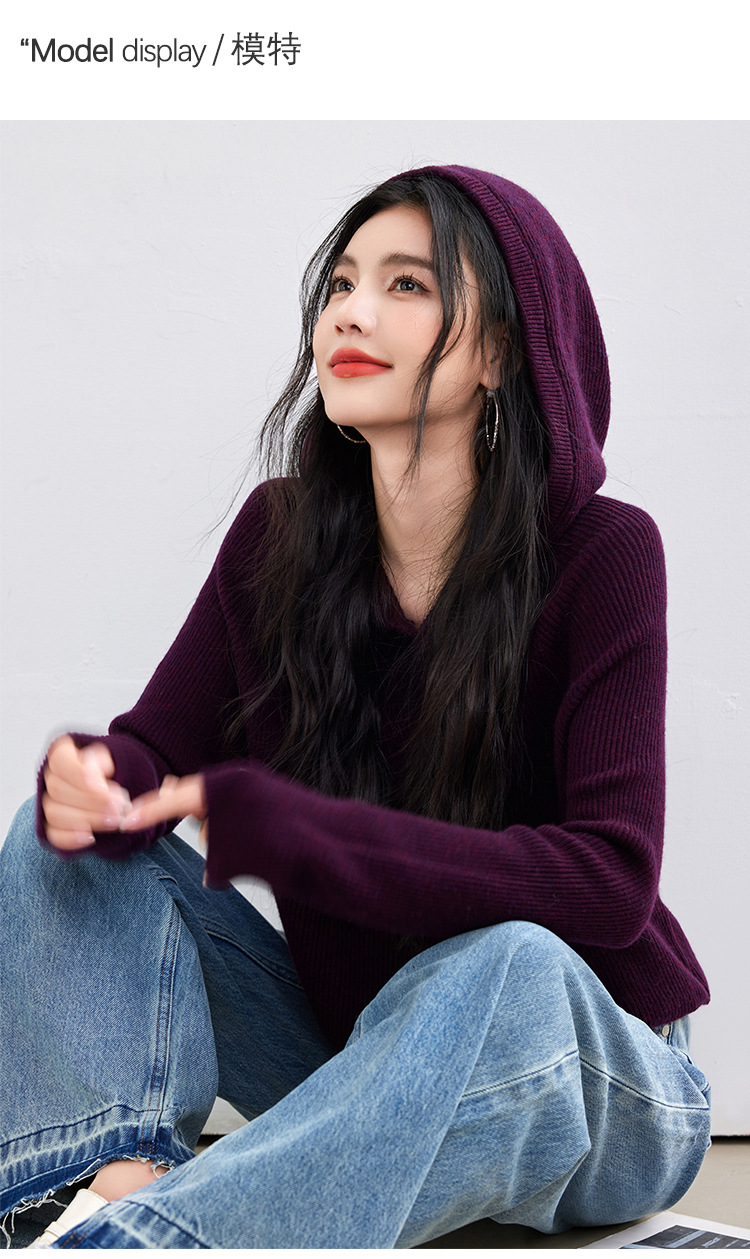 2024 년 겨울 새 한국 패션 게으른 보라색 디자인 센스 스웨터 후드 풀오버 짧은 니트 후드스토어 가기