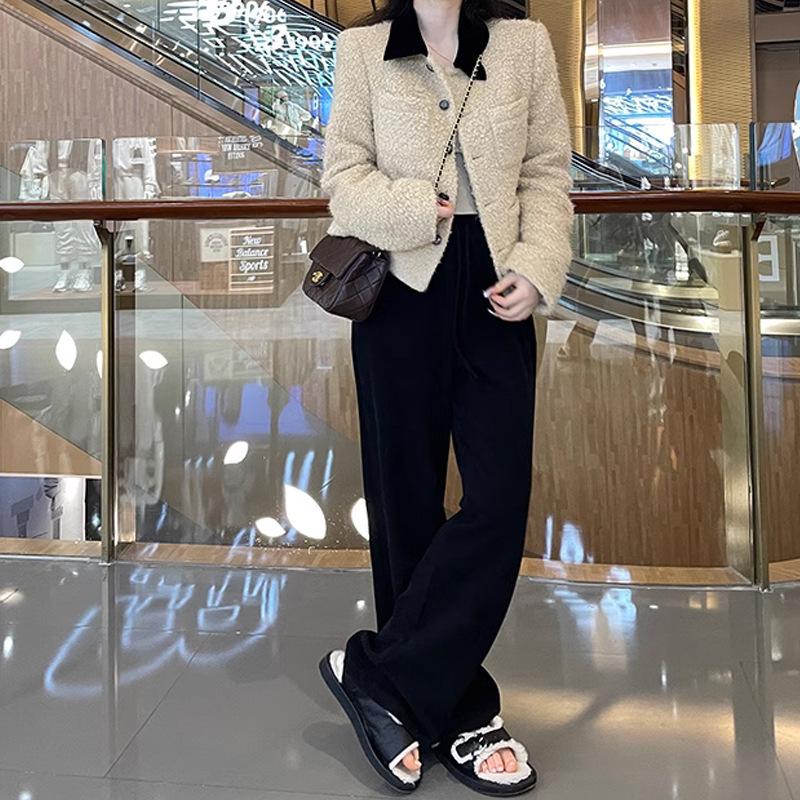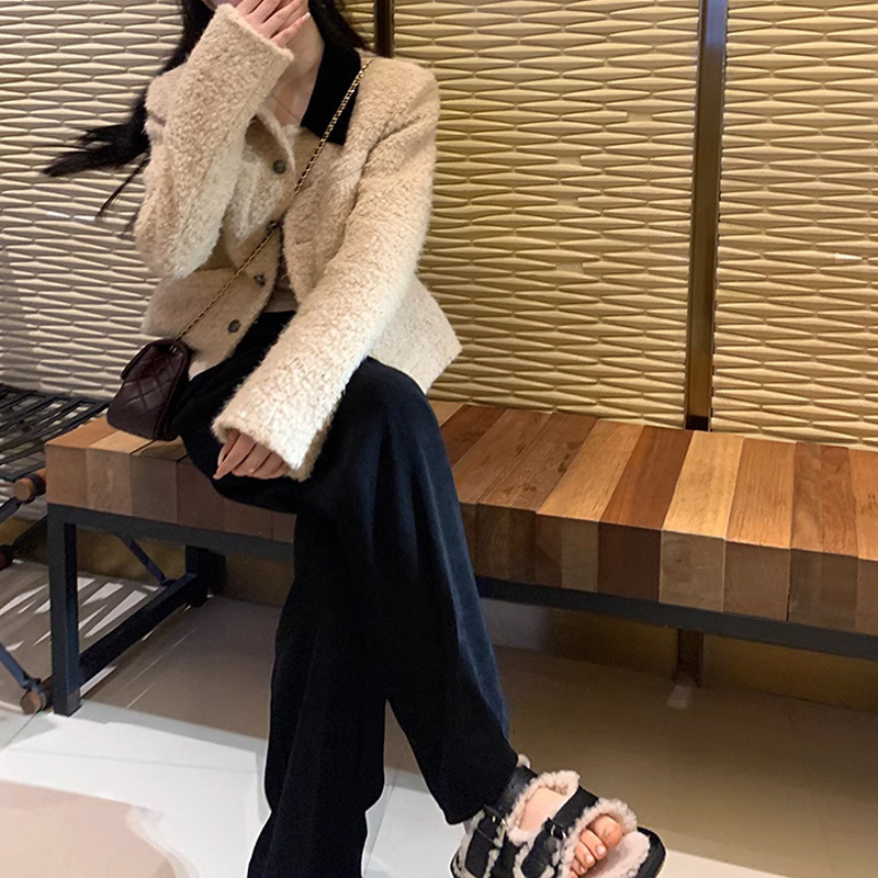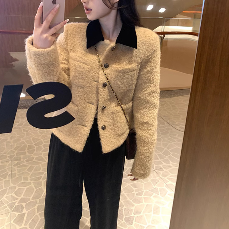 풍부한 가족 딸 작은 샤넬 스타일 양모 코트 여성의 봄 가을과 겨울 하이 엔드 센스 두꺼운 작은 어깨 모피 짧은 코트스토어 가기