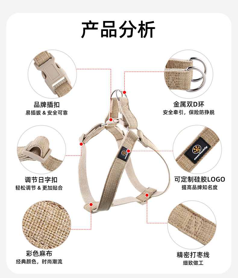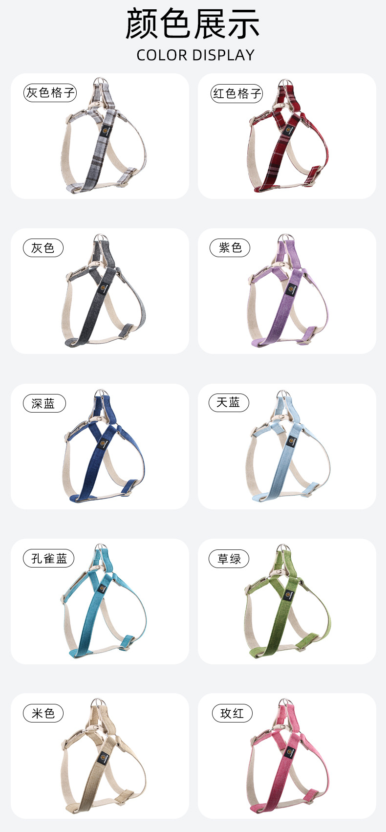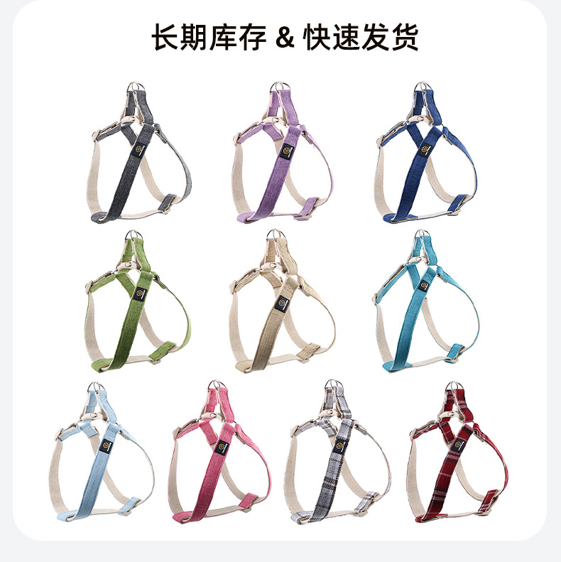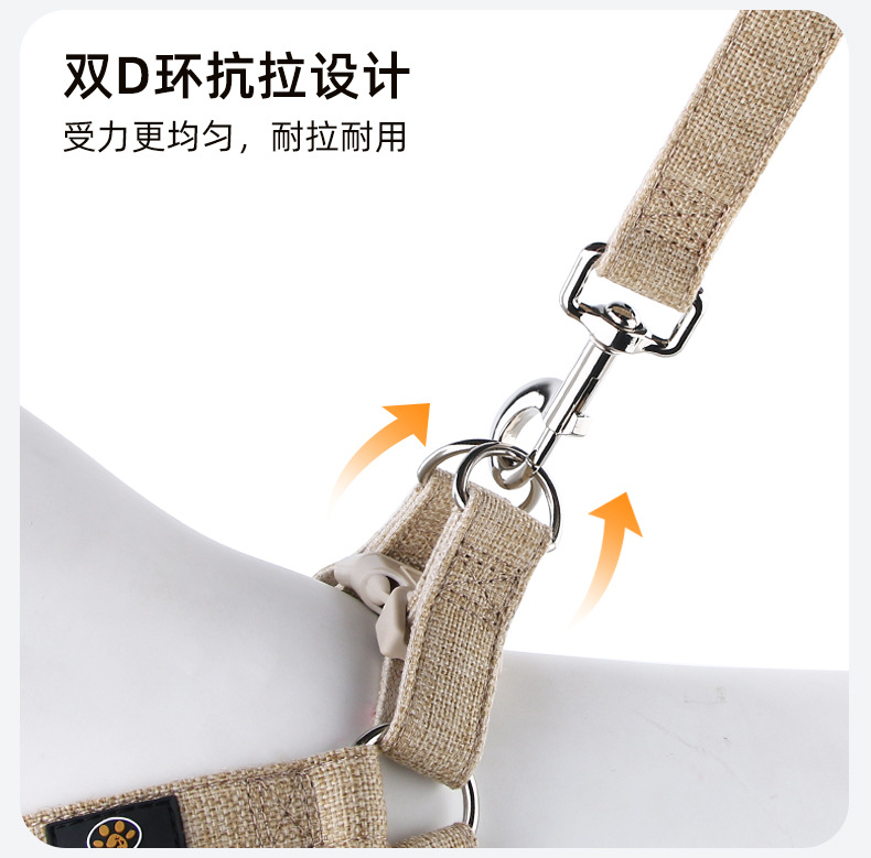국경 간 면화 및 리넨 애완 동물 견인 로프 조정 가능한 개 가슴 끈 조끼 테디 개 걷는 밧줄