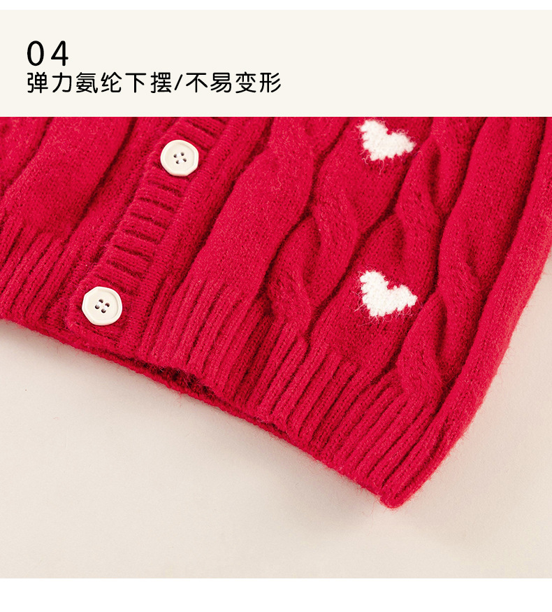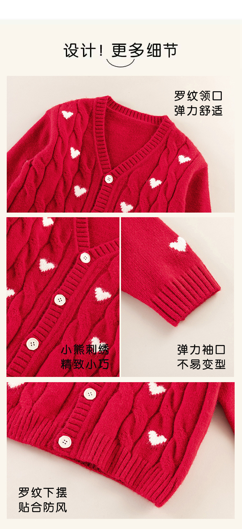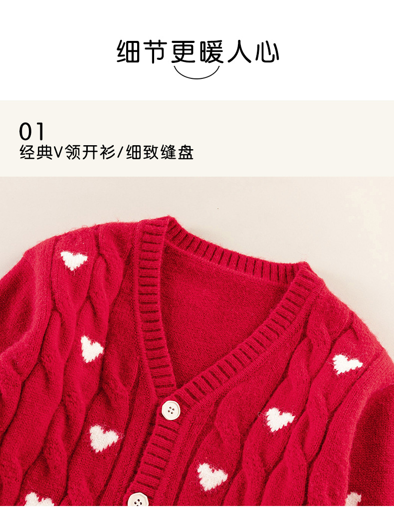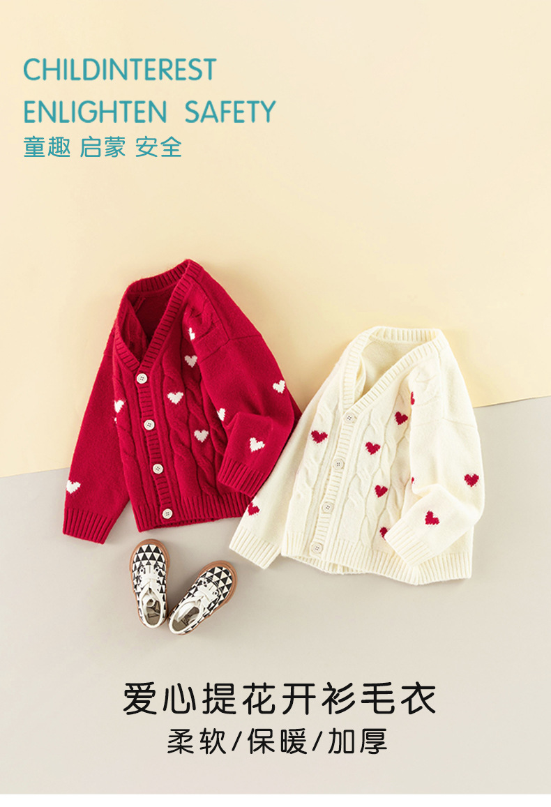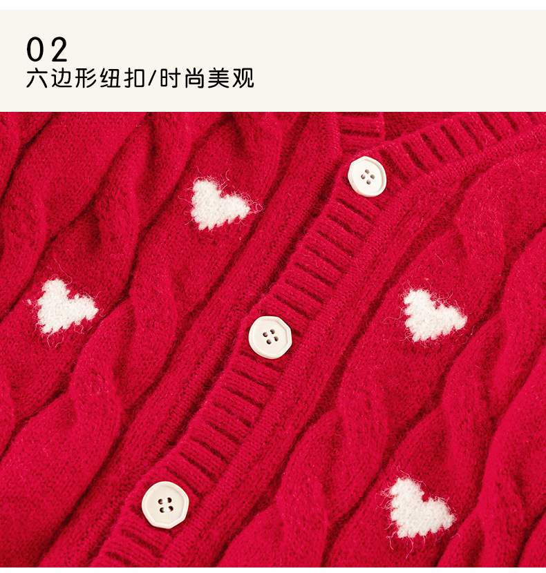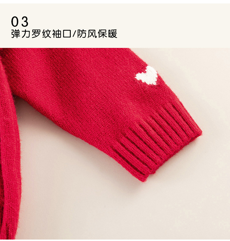 儿童针织开衫外套冬季新款男童加厚毛衣女童保暖毛线衣红色过年服