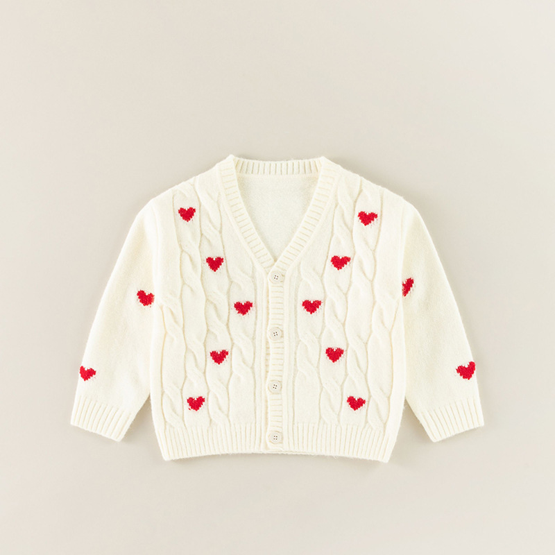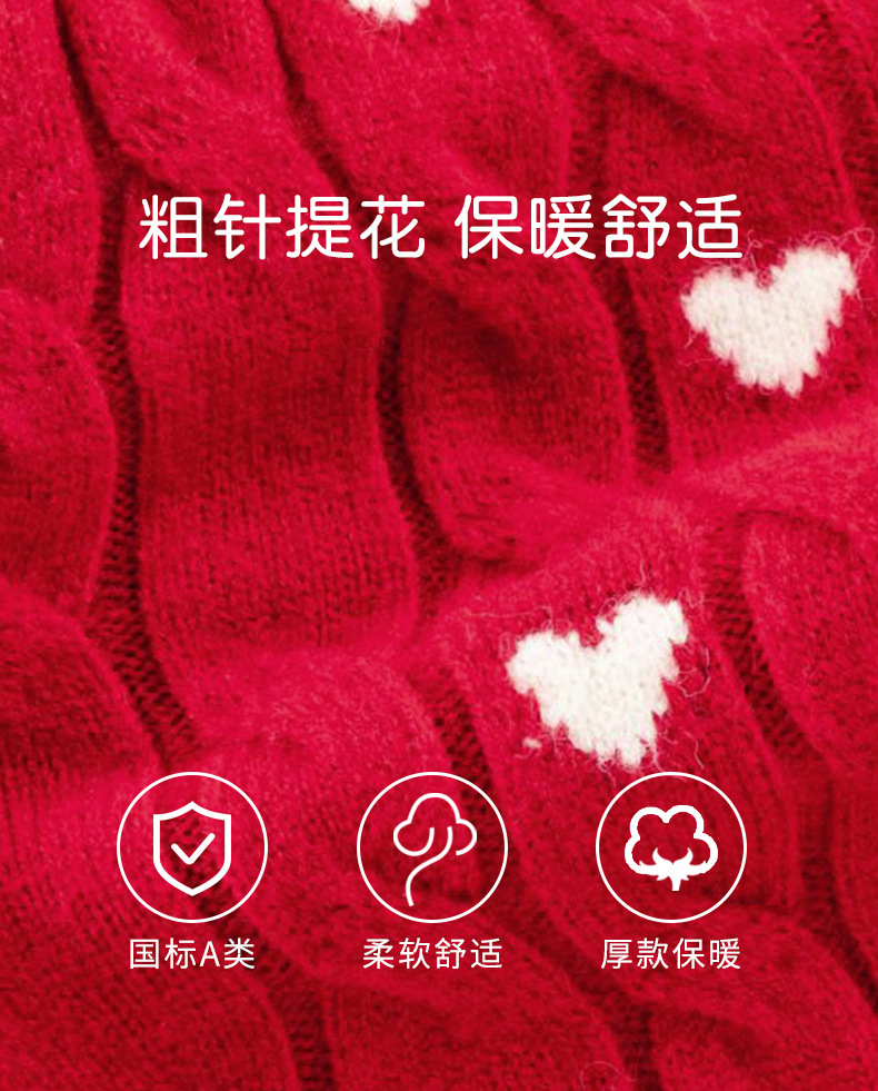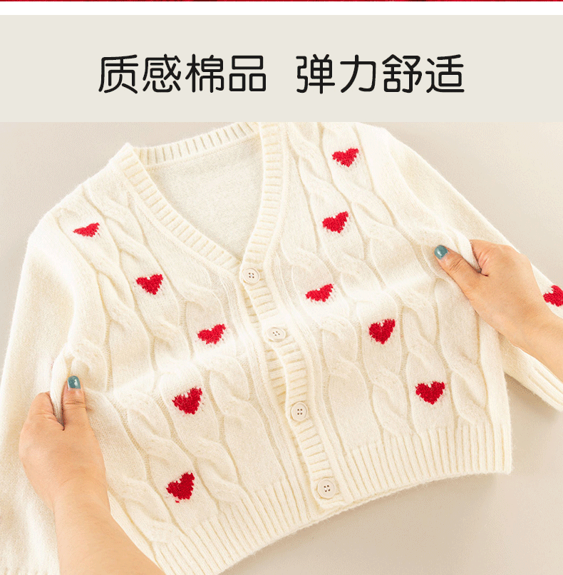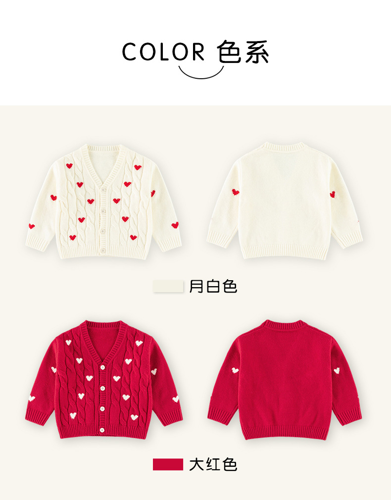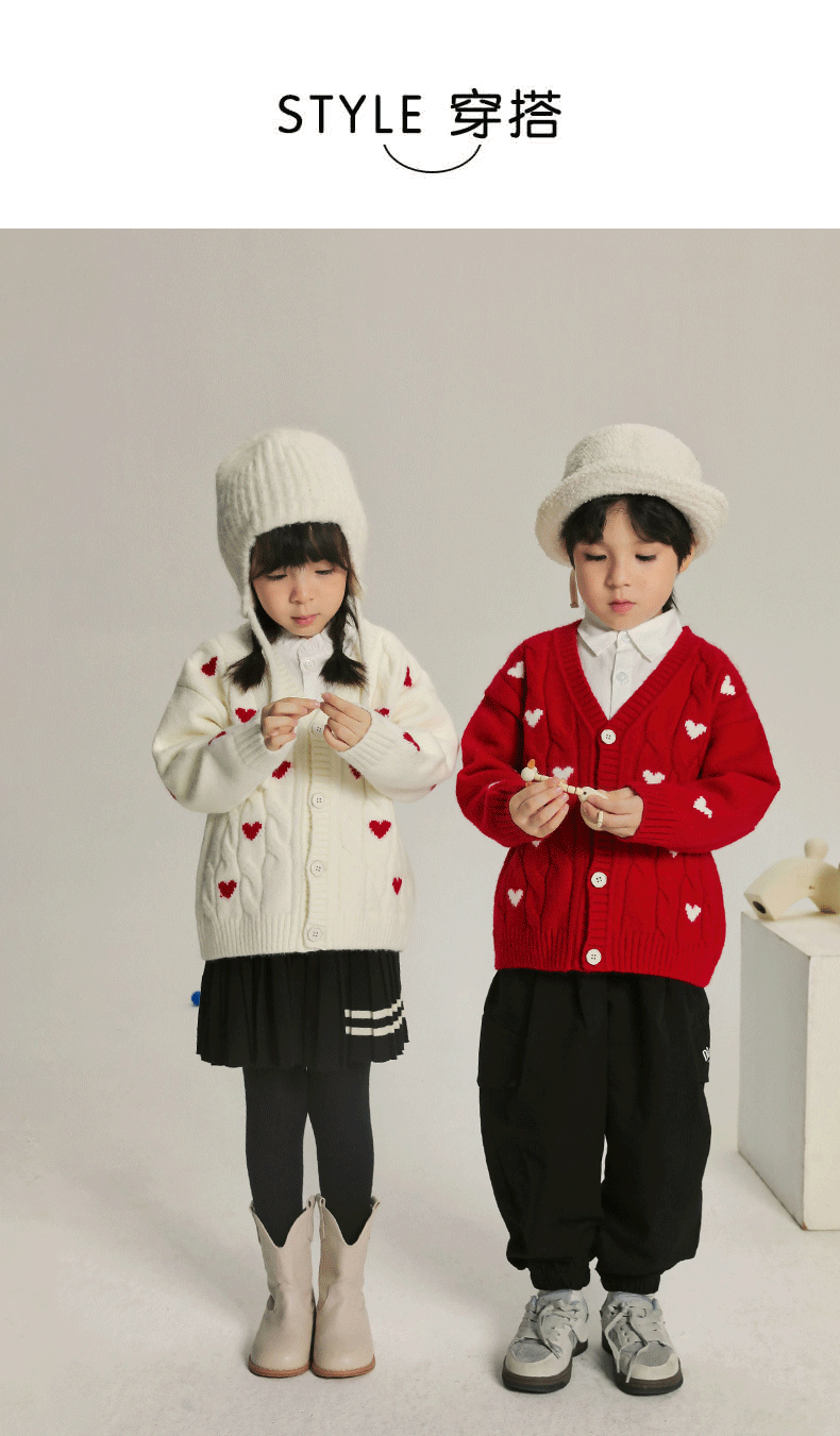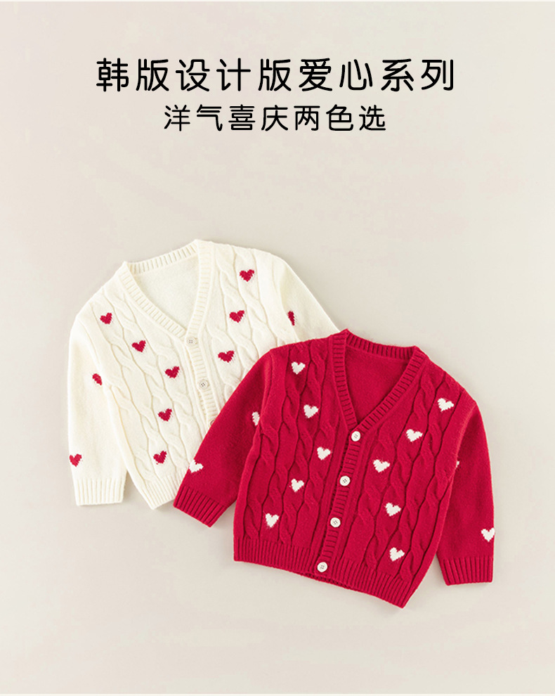 儿童针织开衫外套冬季新款男童加厚毛衣女童保暖毛线衣红色过年服