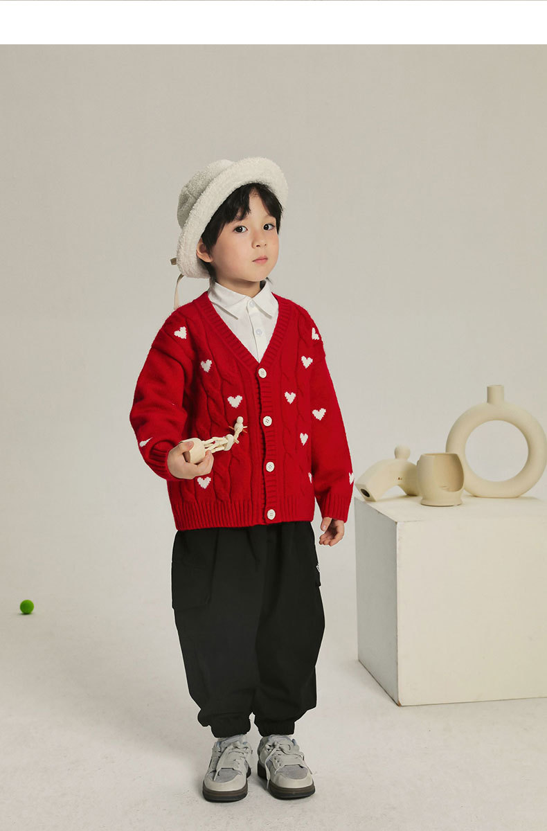 어린이 니트 카디건 코트 겨울 새 소년 두꺼운 스웨터 걸스 따뜻한 스웨터 붉은 새해 옷스토어 가기