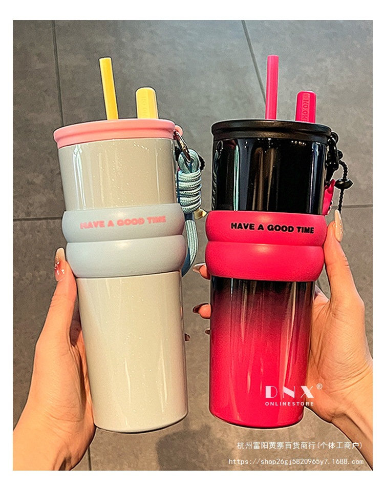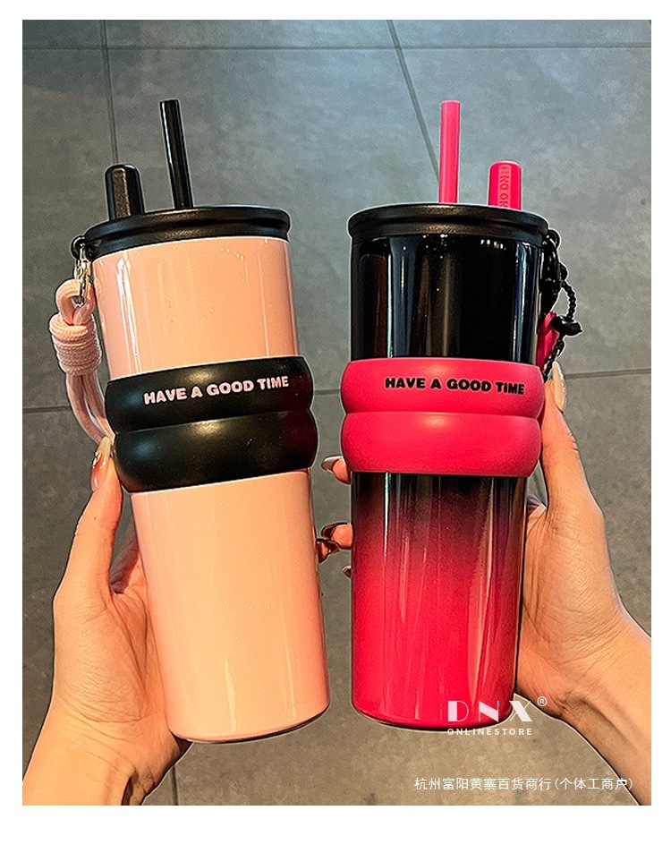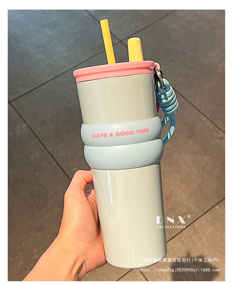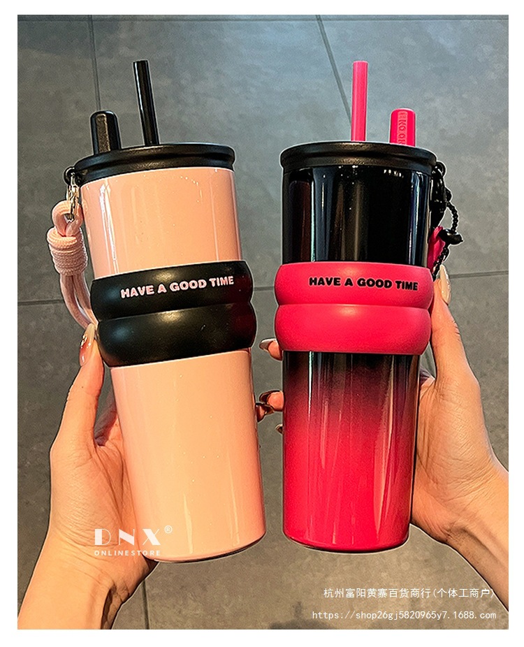 높은 가치의 대용량 보온병 컵 스테인레스 스틸 커피 컵 새로운 하이 엔드 느낌 아이스 컵 sippy 컵 간단한 컵