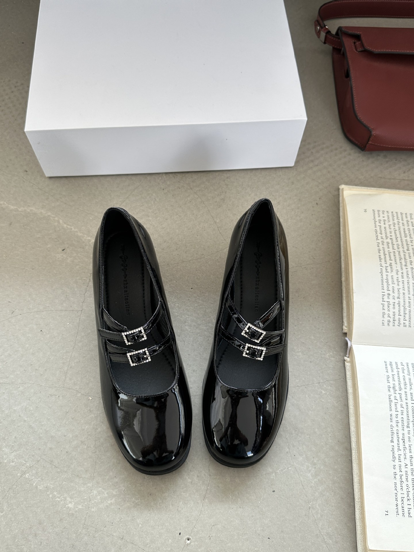 2024 패션 올 매치 메리 제인 버클 가죽 신발 라운드 탑
