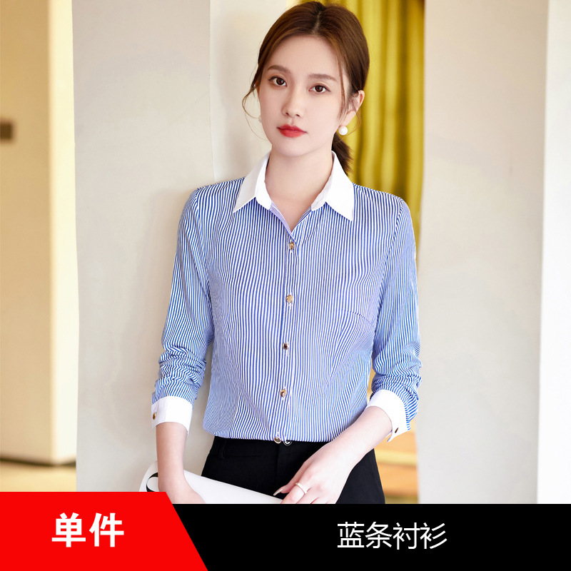 블루 스트라이프 화이트 칼라 셔츠 여성의 긴 소매 가을과 겨울 슬림 핏 작업베이스 셔츠 우아한 작업복 전문 면 셔츠스토어 가기