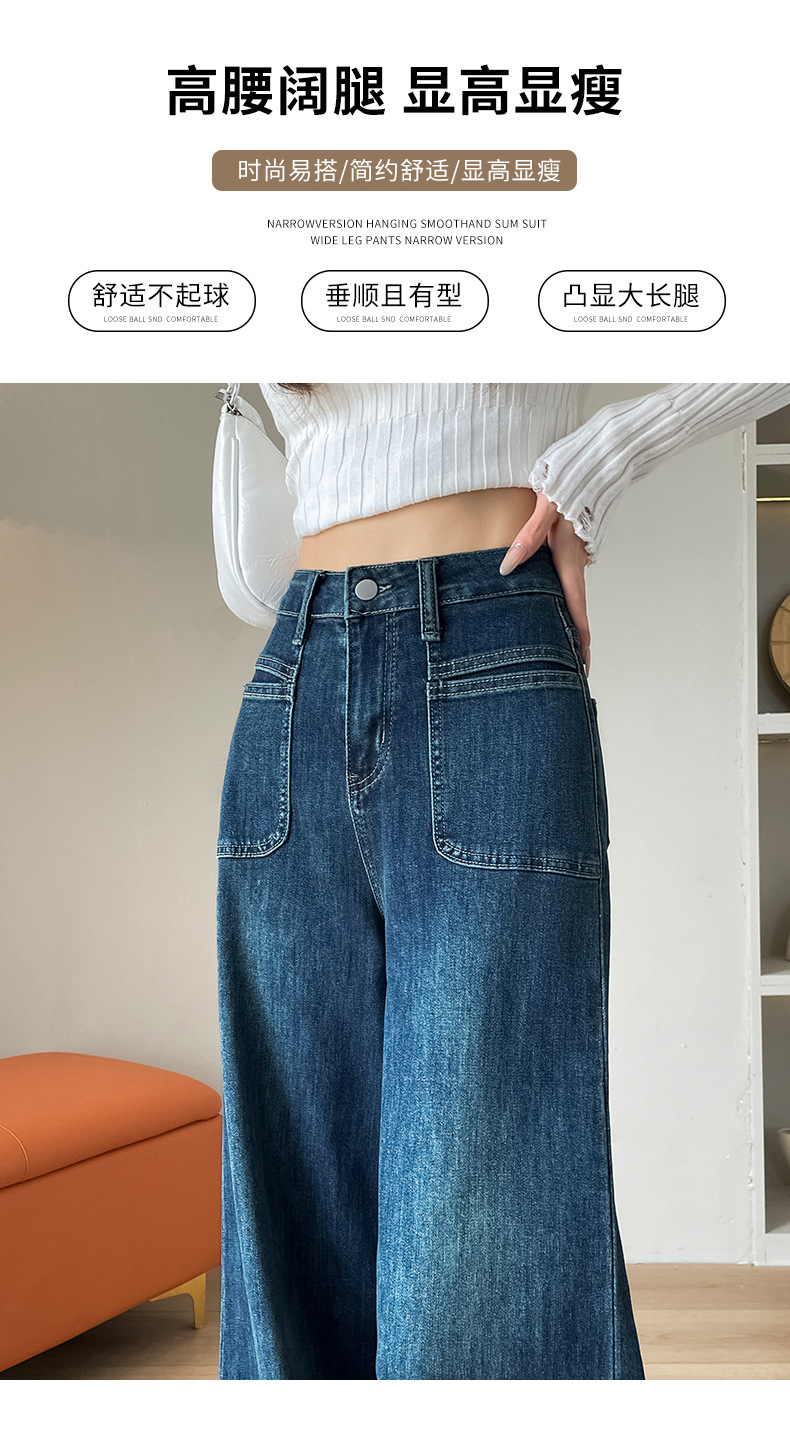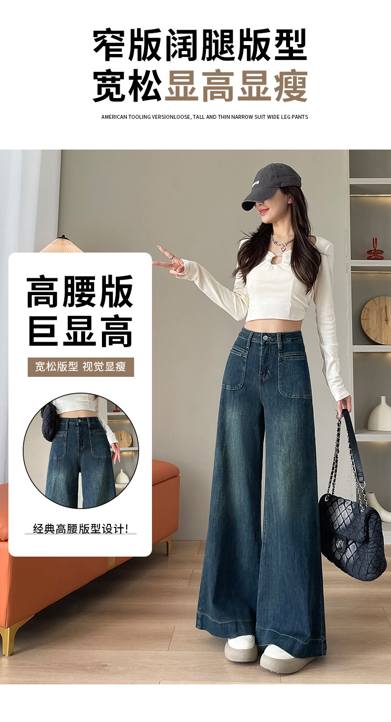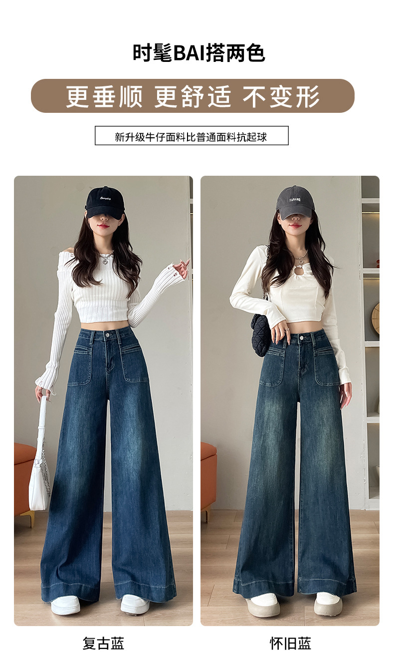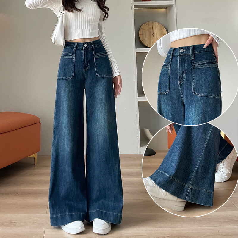 넓은 다리 청바지 여성의 봄 가을과 겨울 2024 새로운 높은 허리 슬리밍 느슨한 유행 직선 바지스토어 가기