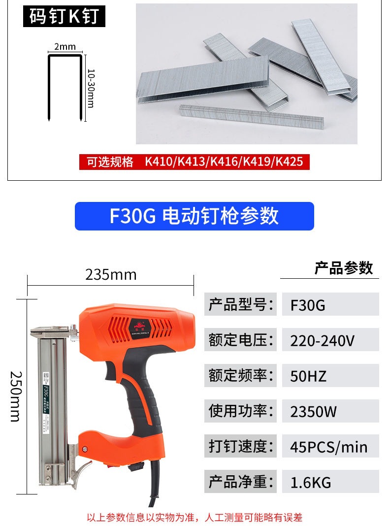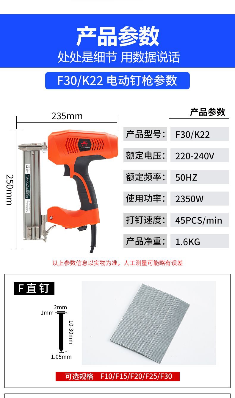 전기 네일 건 이중 목적 네일 펀치 F30 스트레이트 네일 건 코드 네일 건 목공 도구 가스 전기 네일 건