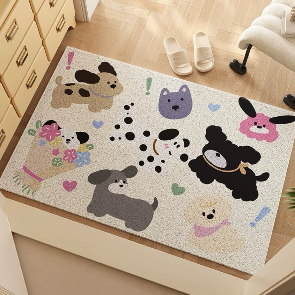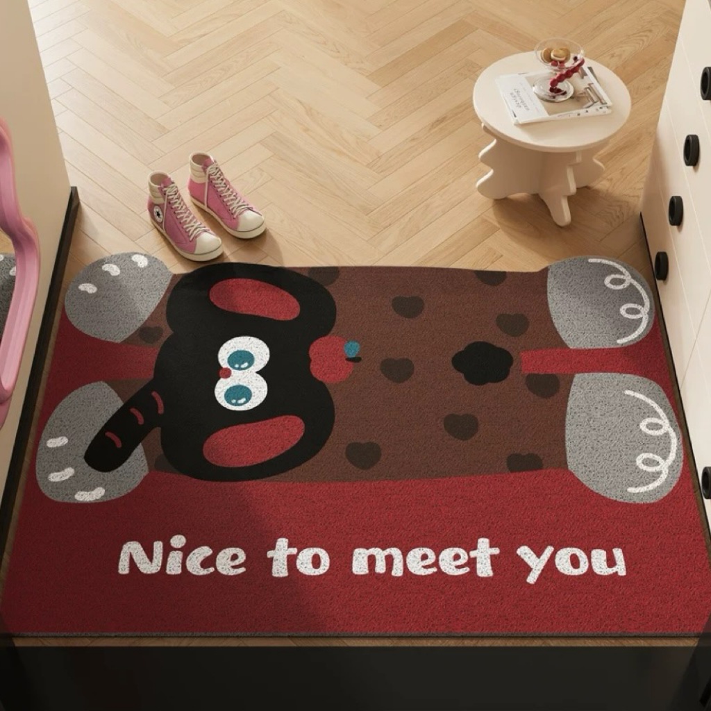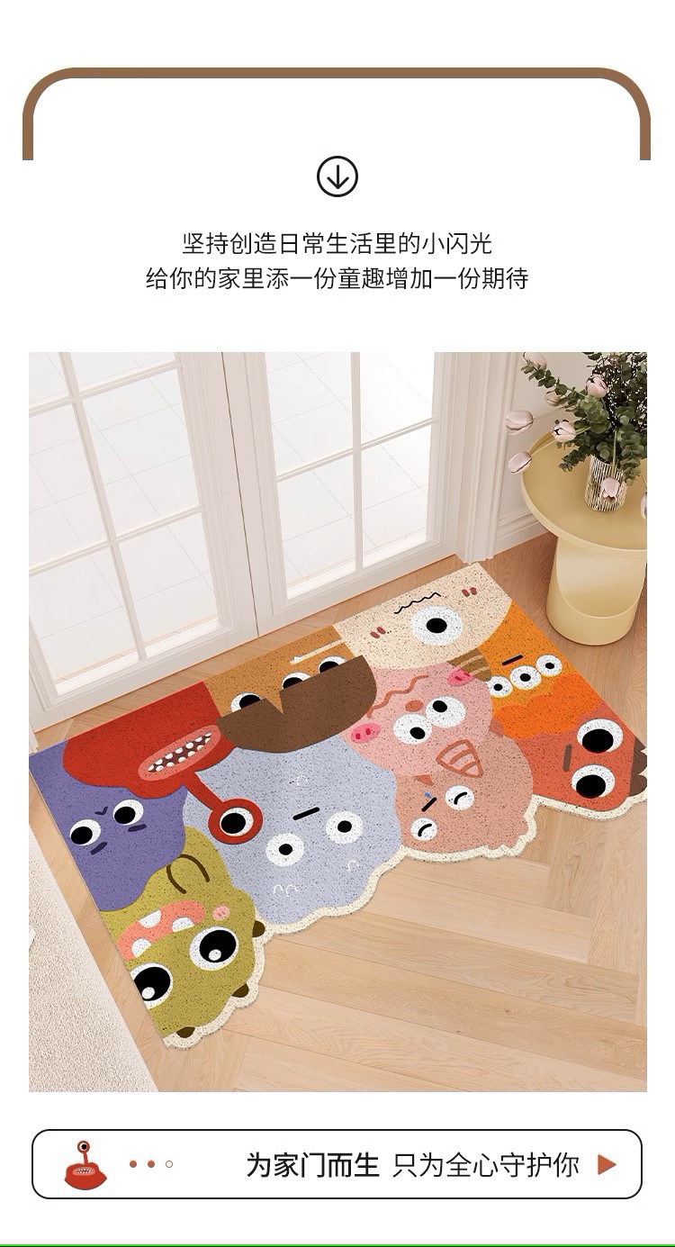 작은 몬스터 입구 문 매트 실크 루프 절단 가능한 미끄럼 방지 발 매트 만화 입구 문 카펫 먼지 매트