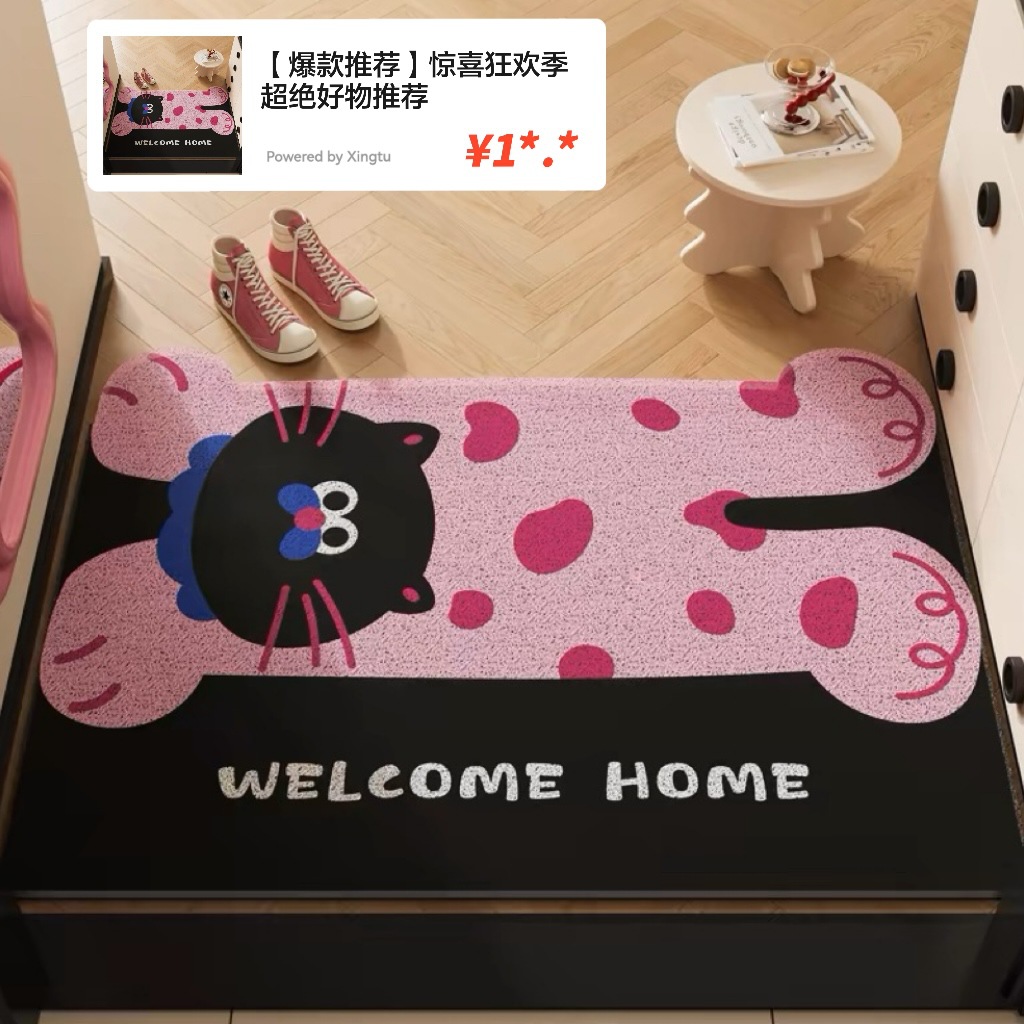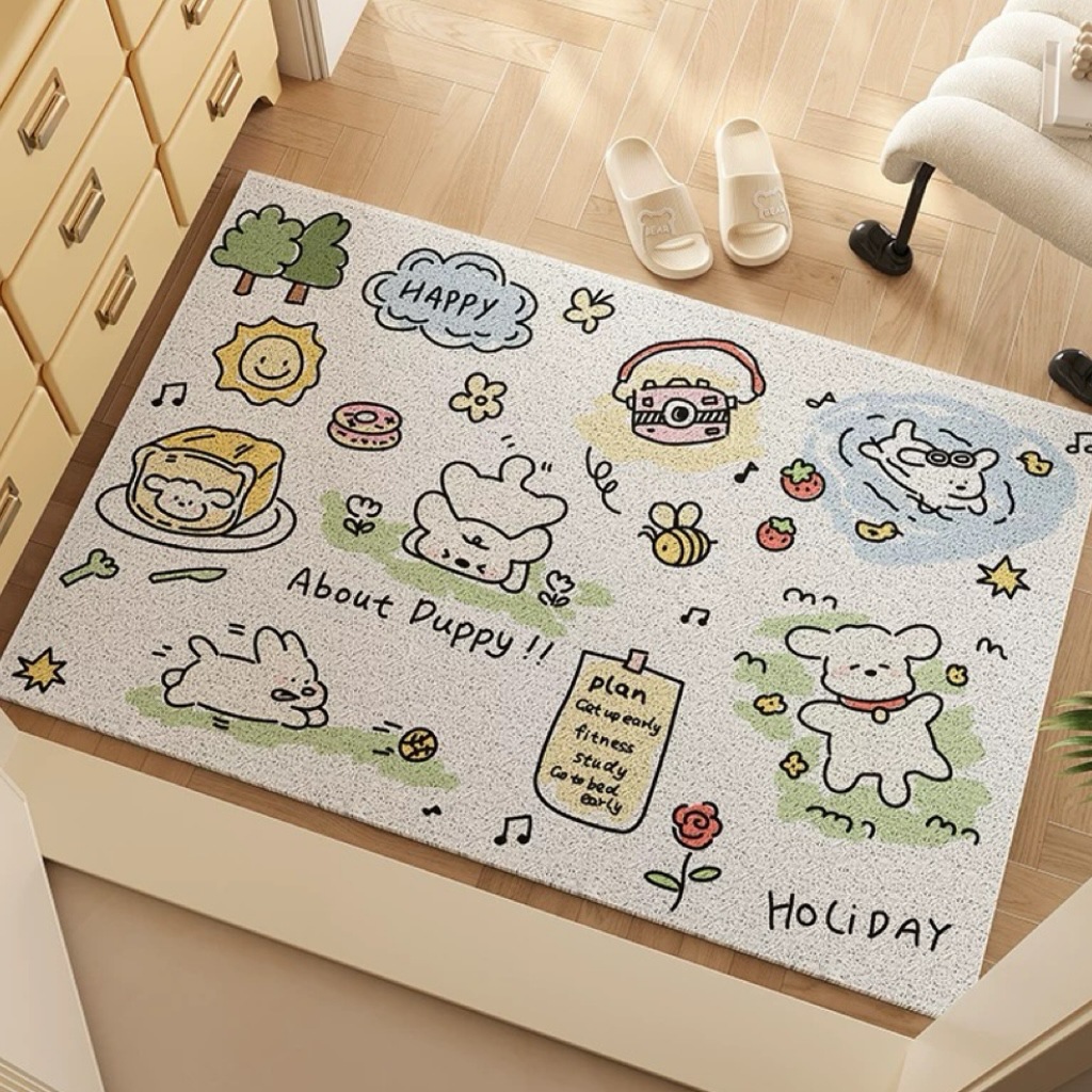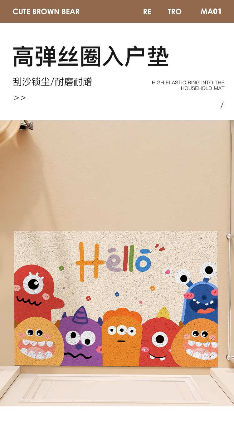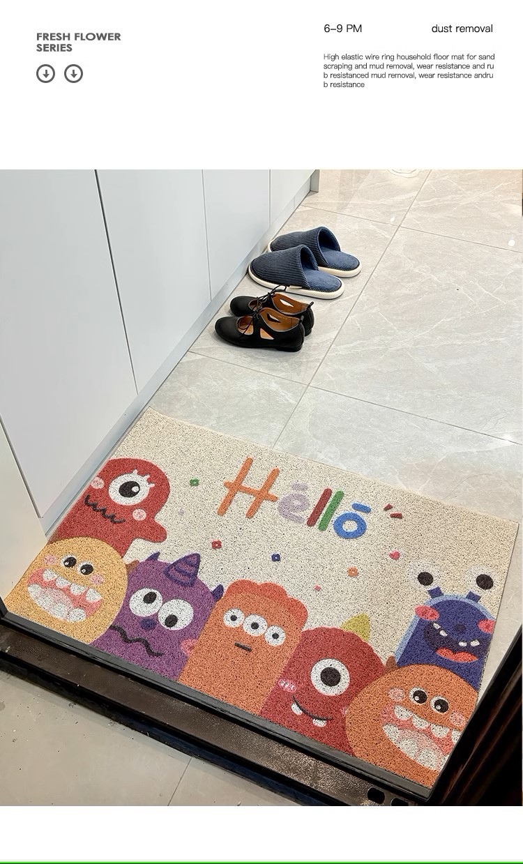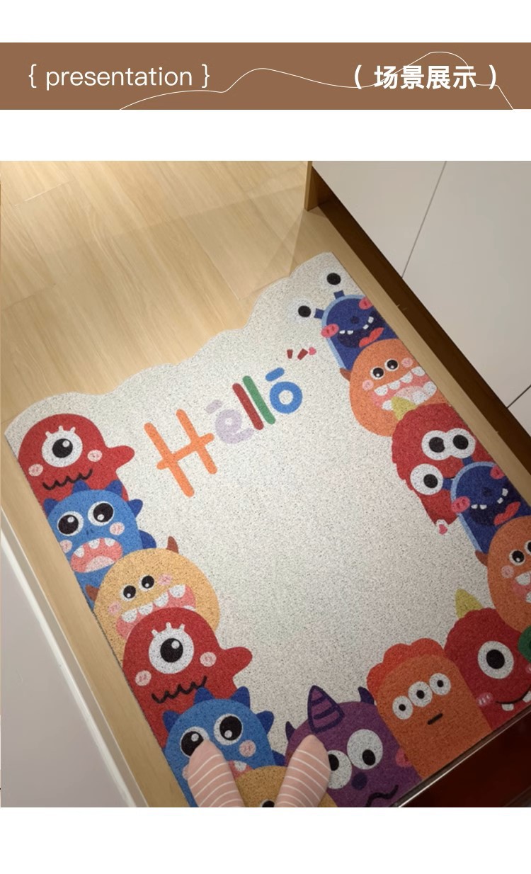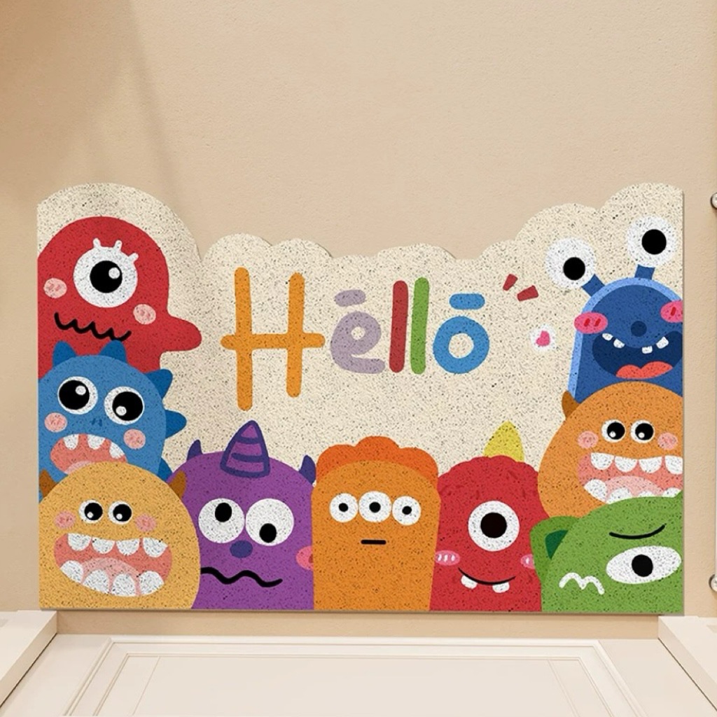 작은 몬스터 입구 문 매트 실크 루프 절단 가능한 미끄럼 방지 발 매트 만화 입구 문 카펫 먼지 매트스토어 가기