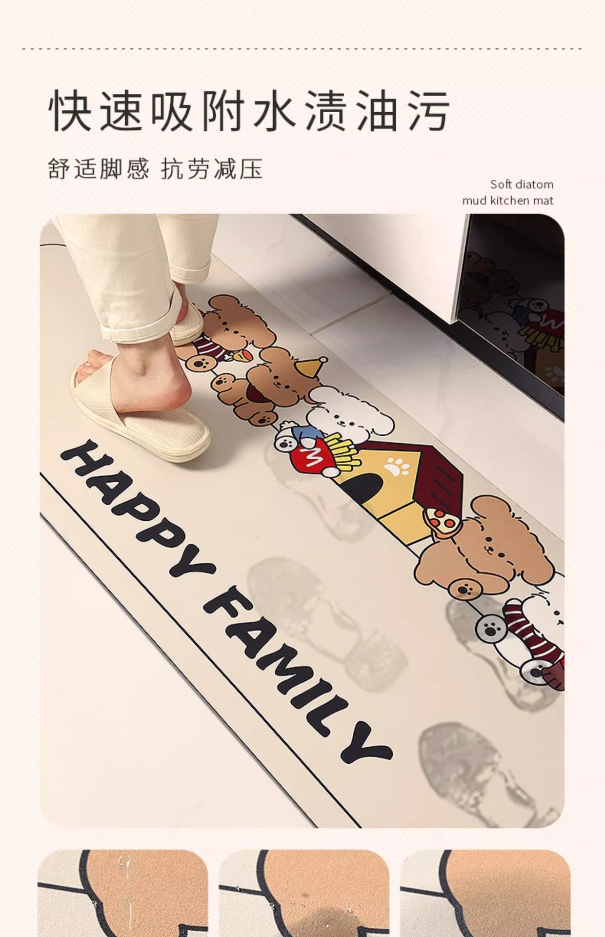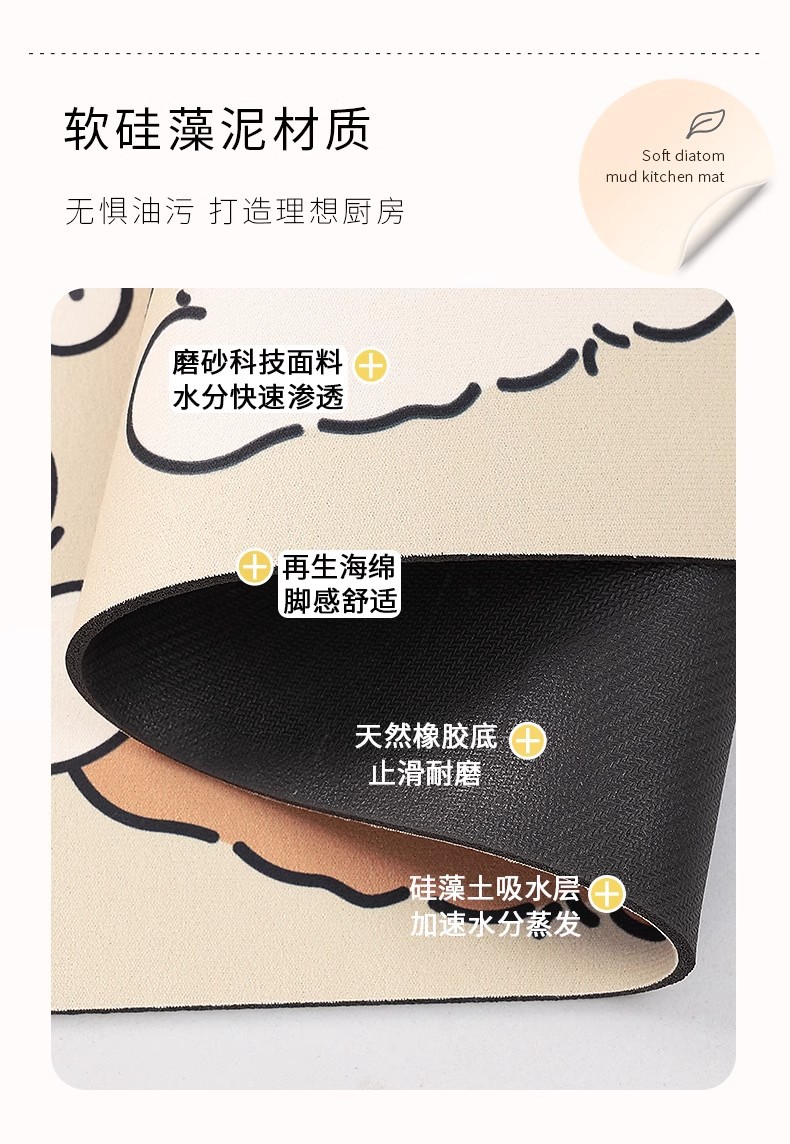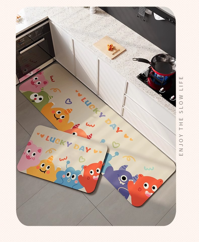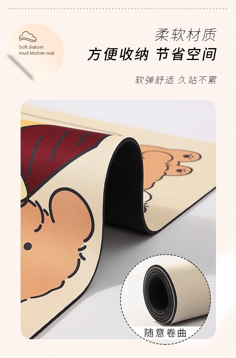 만화 Diatom 진흙 바닥 매트 물 흡수 및 오일 흡수 주방 바닥 매트 가정용 미끄럼 방지 매트 내마모성 사용하기 쉬운 바닥 매트