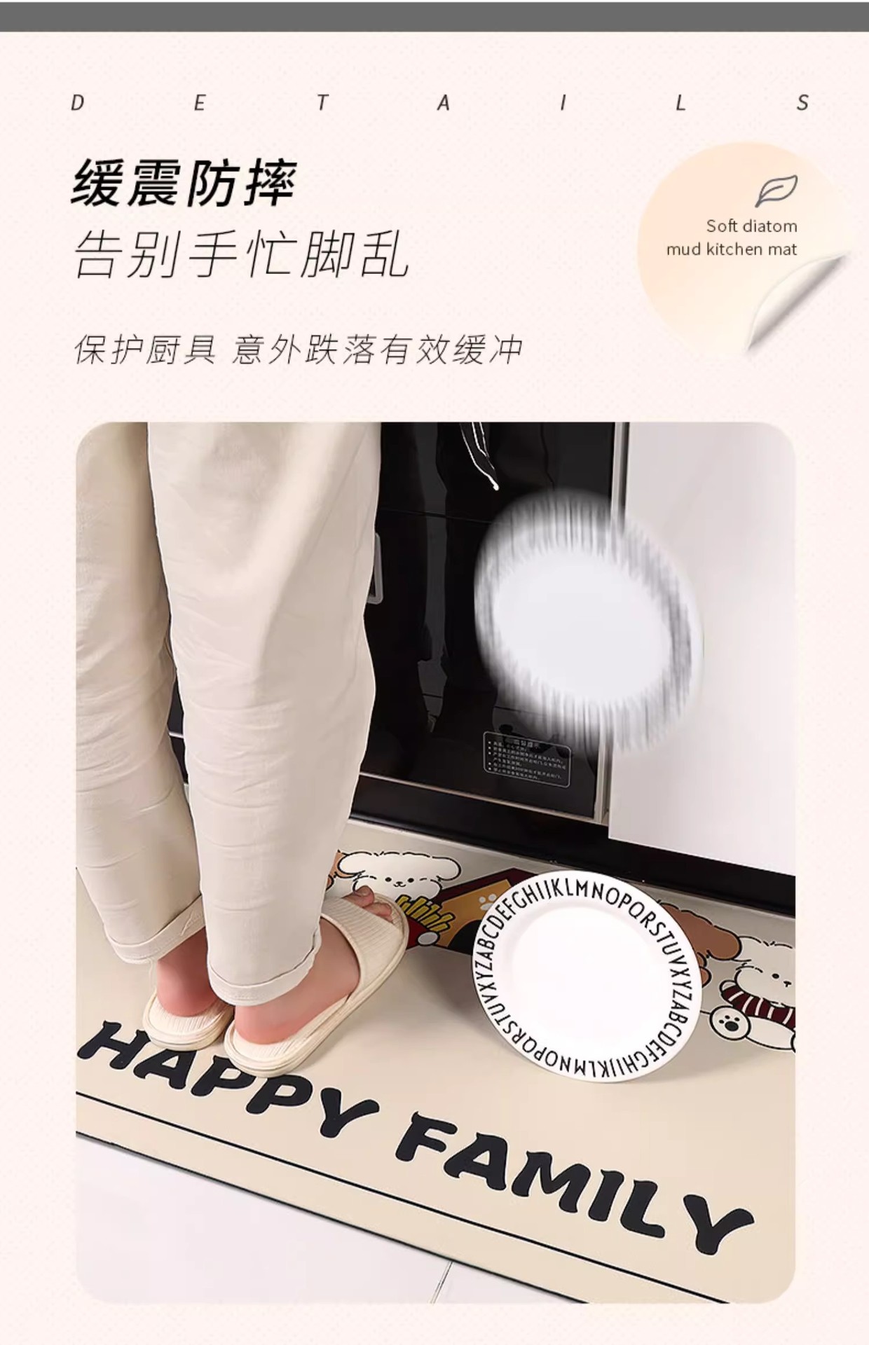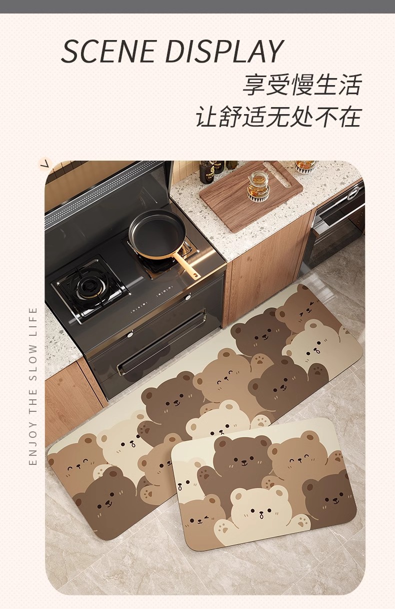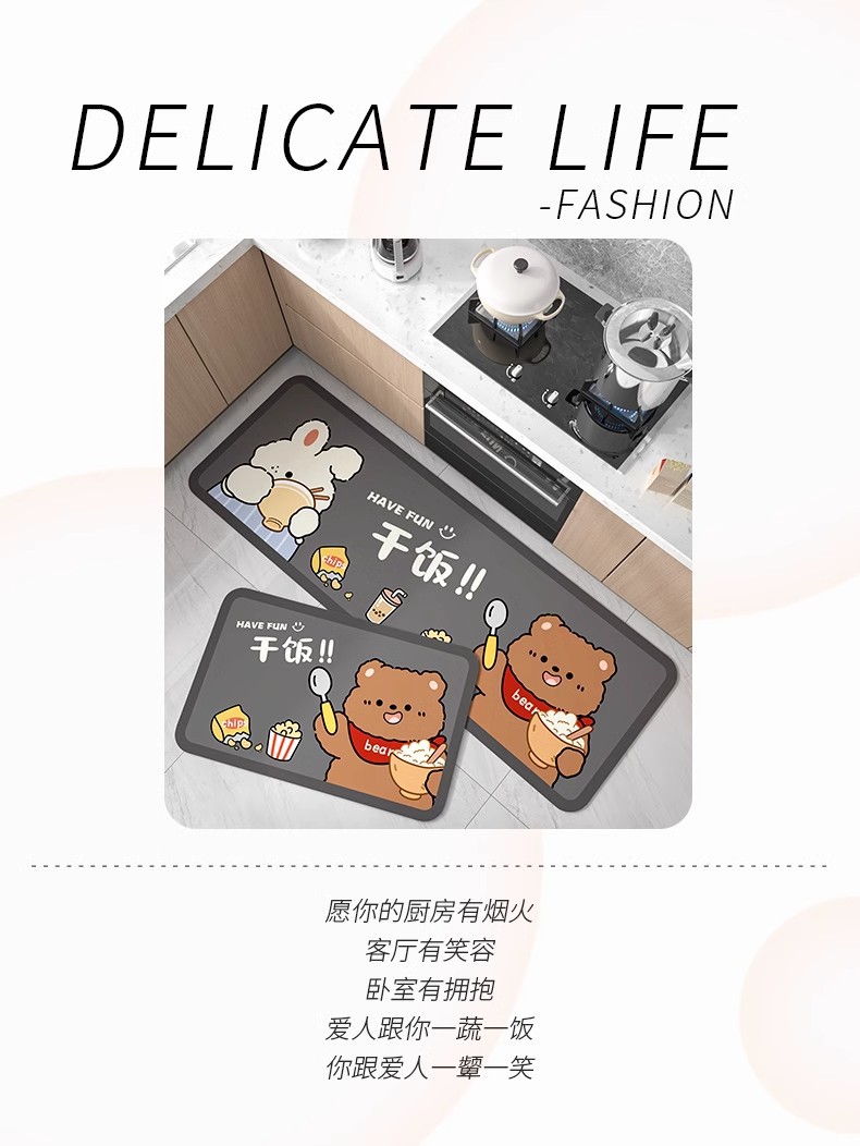 만화 Diatom 진흙 바닥 매트 물 흡수 및 오일 흡수 주방 바닥 매트 가정용 미끄럼 방지 매트 내마모성 사용하기 쉬운 바닥 매트