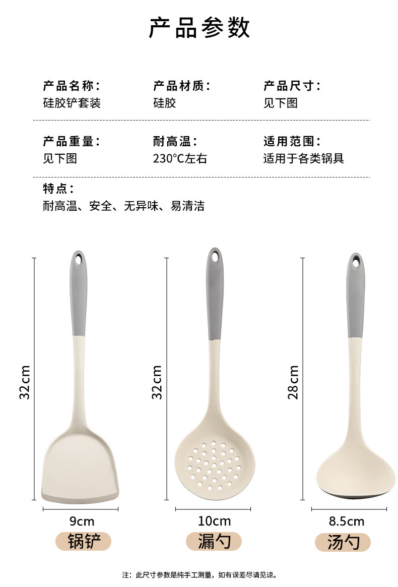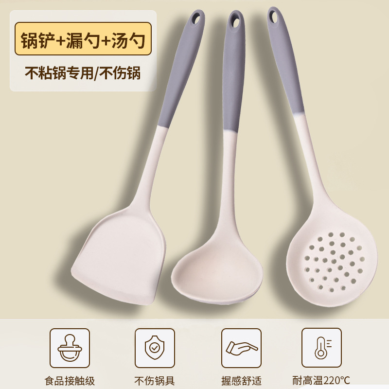컬러 블록 회색 실리콘 주걱 가정용 고온 저항하는 비 스틱 요리 도구 낚시 울타리 주걱 수프 숟가락 주방 세트