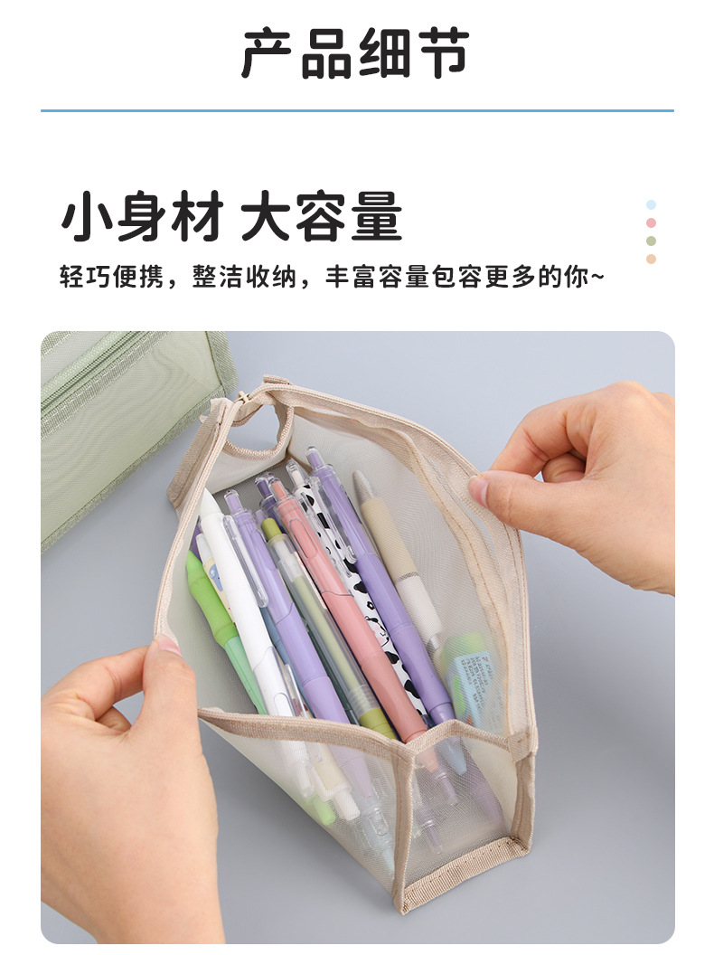 초등학생을위한 창의적인 투명 메쉬 더블 레이어 연필 가방 입체 대용량 연필 가방 간단한 문구 상자 도매스토어 가기