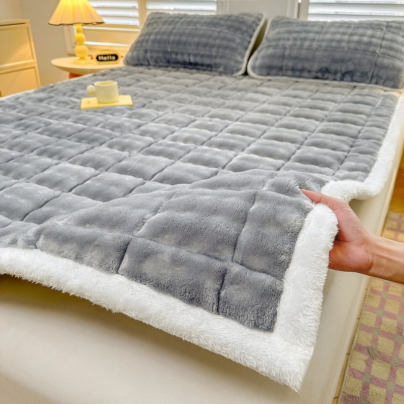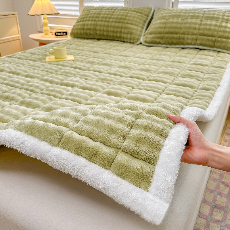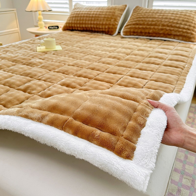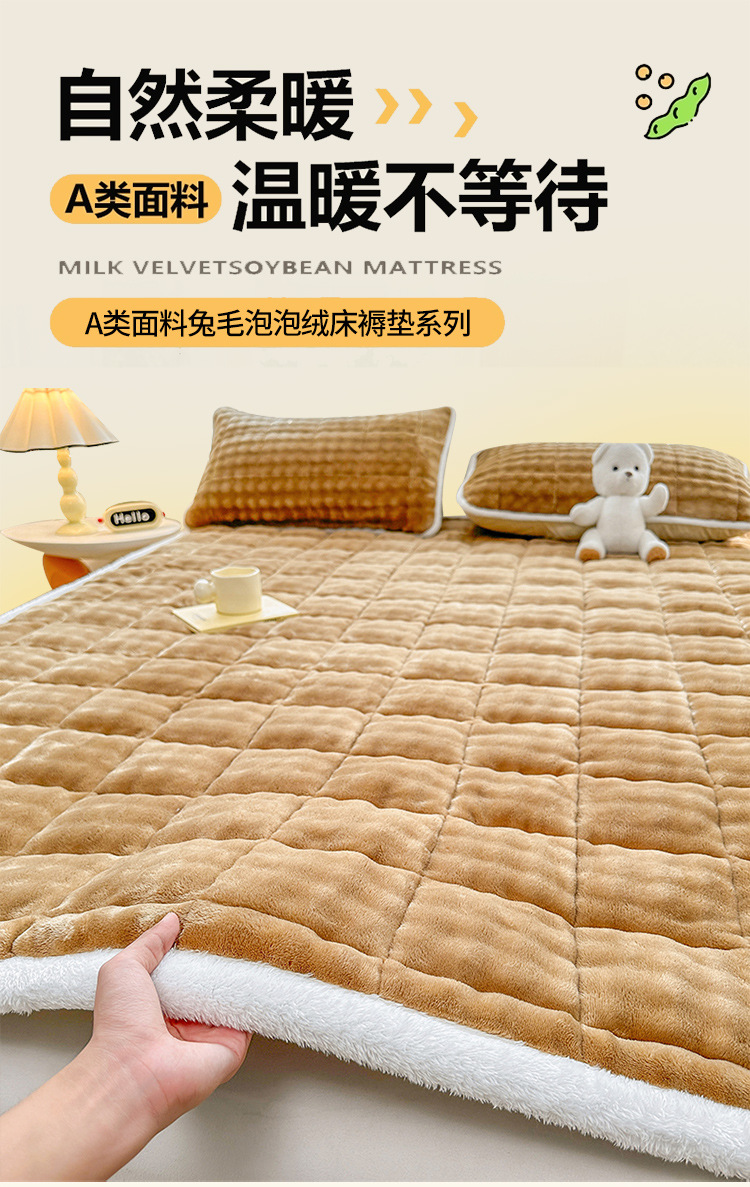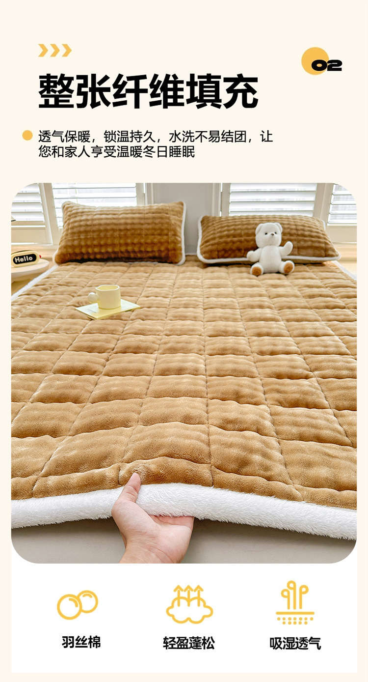 클래스 퀼트 매트리스 토끼 벨벳 침대 매트리스 기숙사 홈 기모 미끄럼 방지 따뜻한 매트 겨울 우유 벨벳 플러스