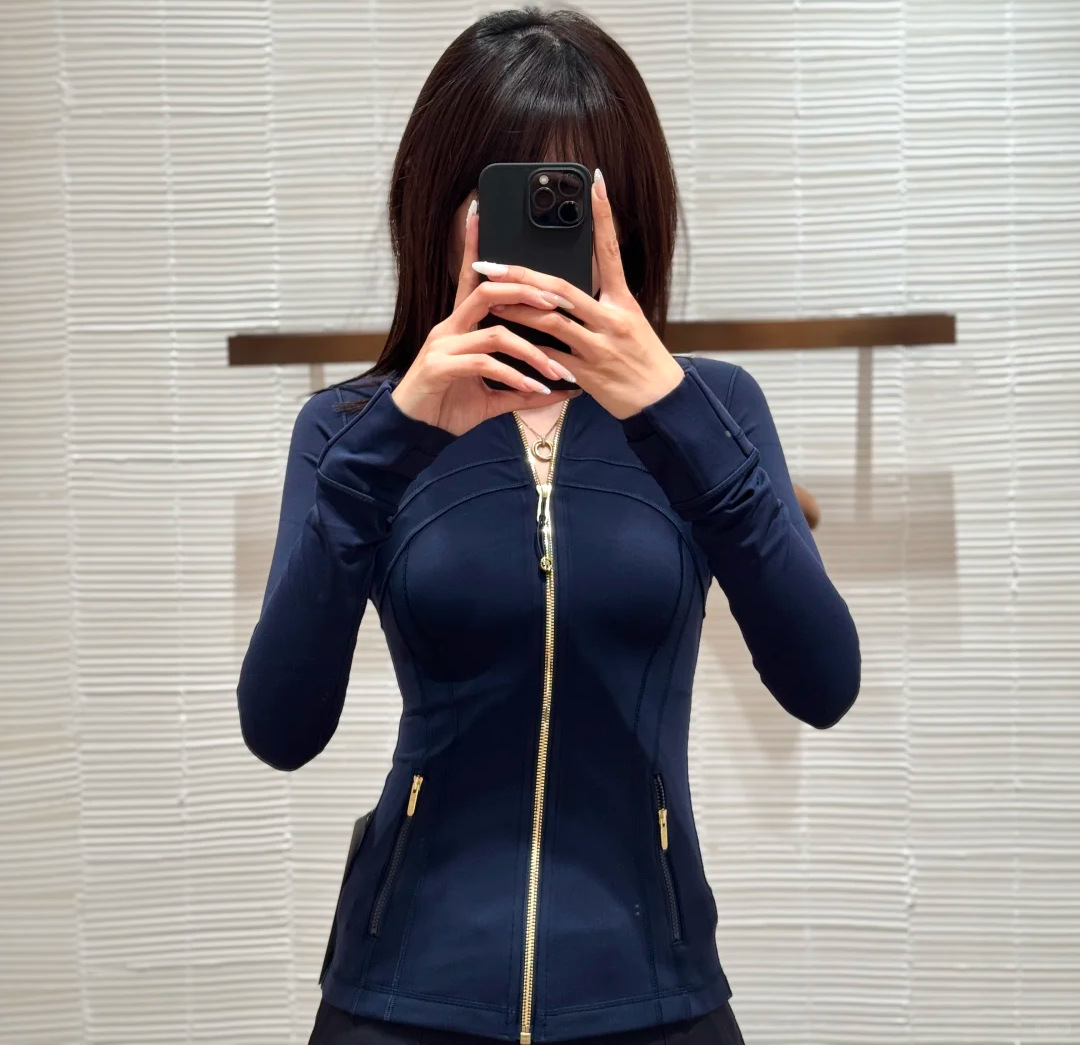 루루 스위프트 스피드 요가 재킷 타이트 스탠드 칼라 골드 지퍼 긴팔 탑 스포츠 속건성 바디 슈트