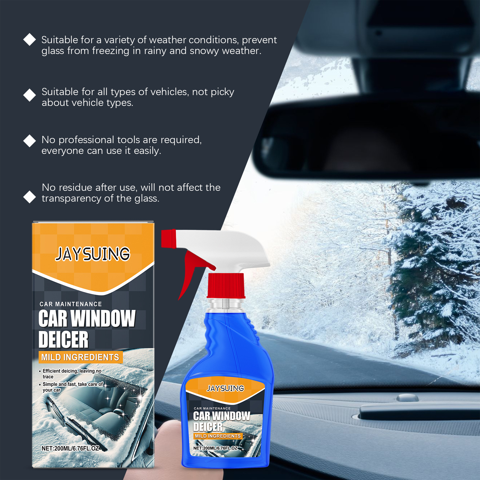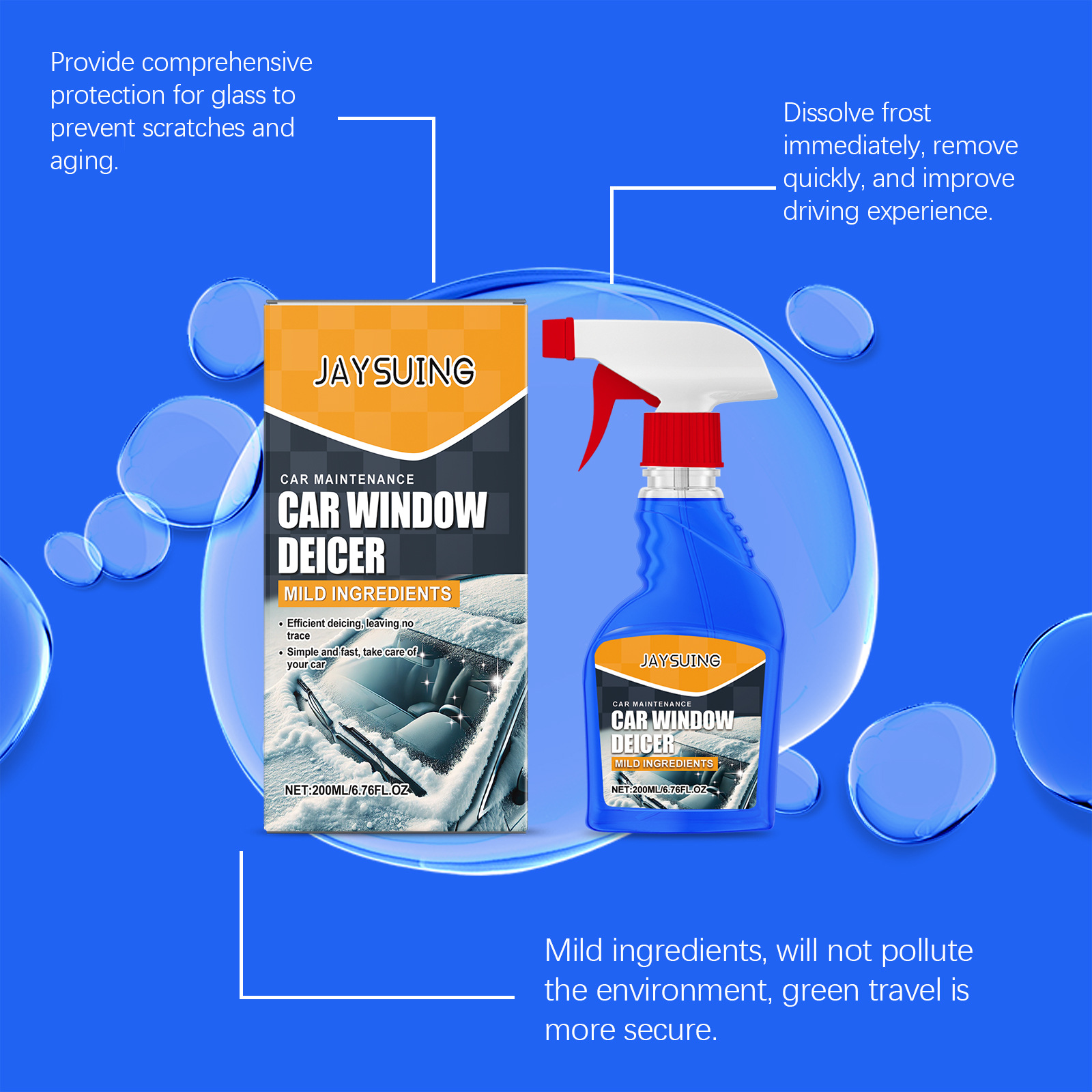 Jaysixing 창 제빙 에이전트 자동차 창 앞 유리 제빙 부동액 방진 비전 클리어스토어 가기