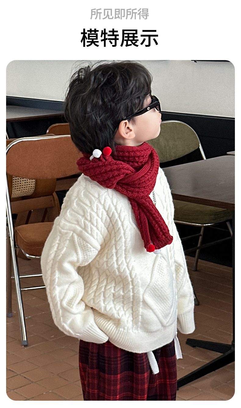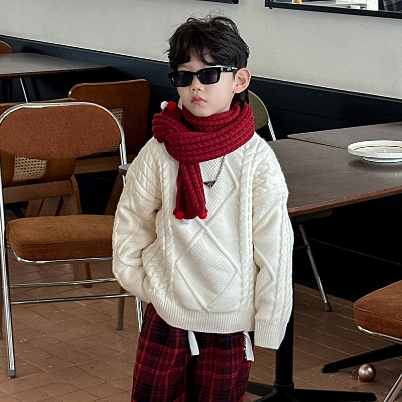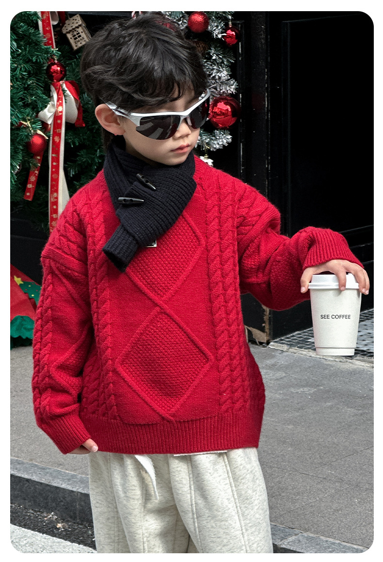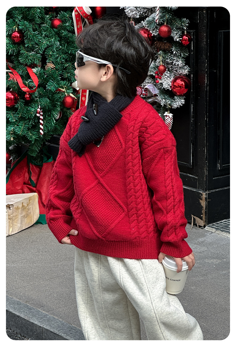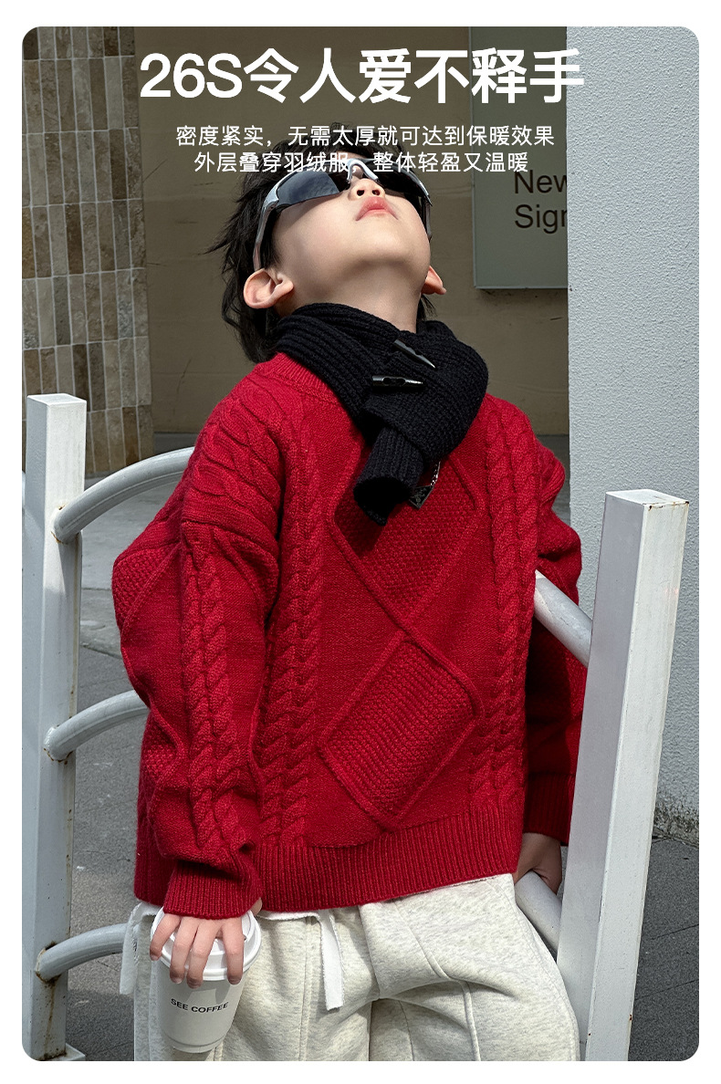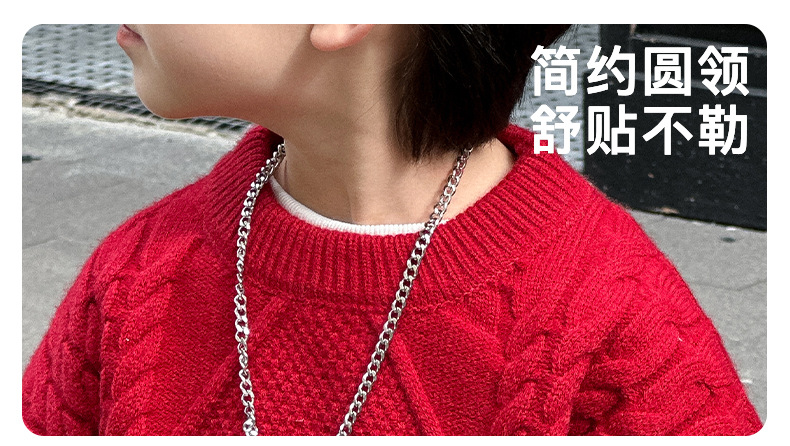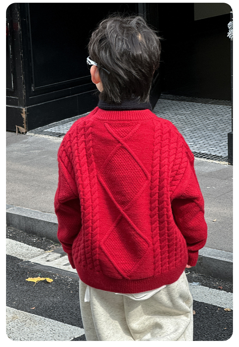 어린이용 두꺼운 보온 스웨터 2024 겨울 신상 한국 스타일 설날 의상, 중소 어린이용 세련된 스웨터, 남아용 긴팔스토어 가기