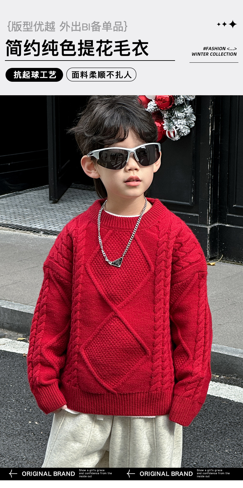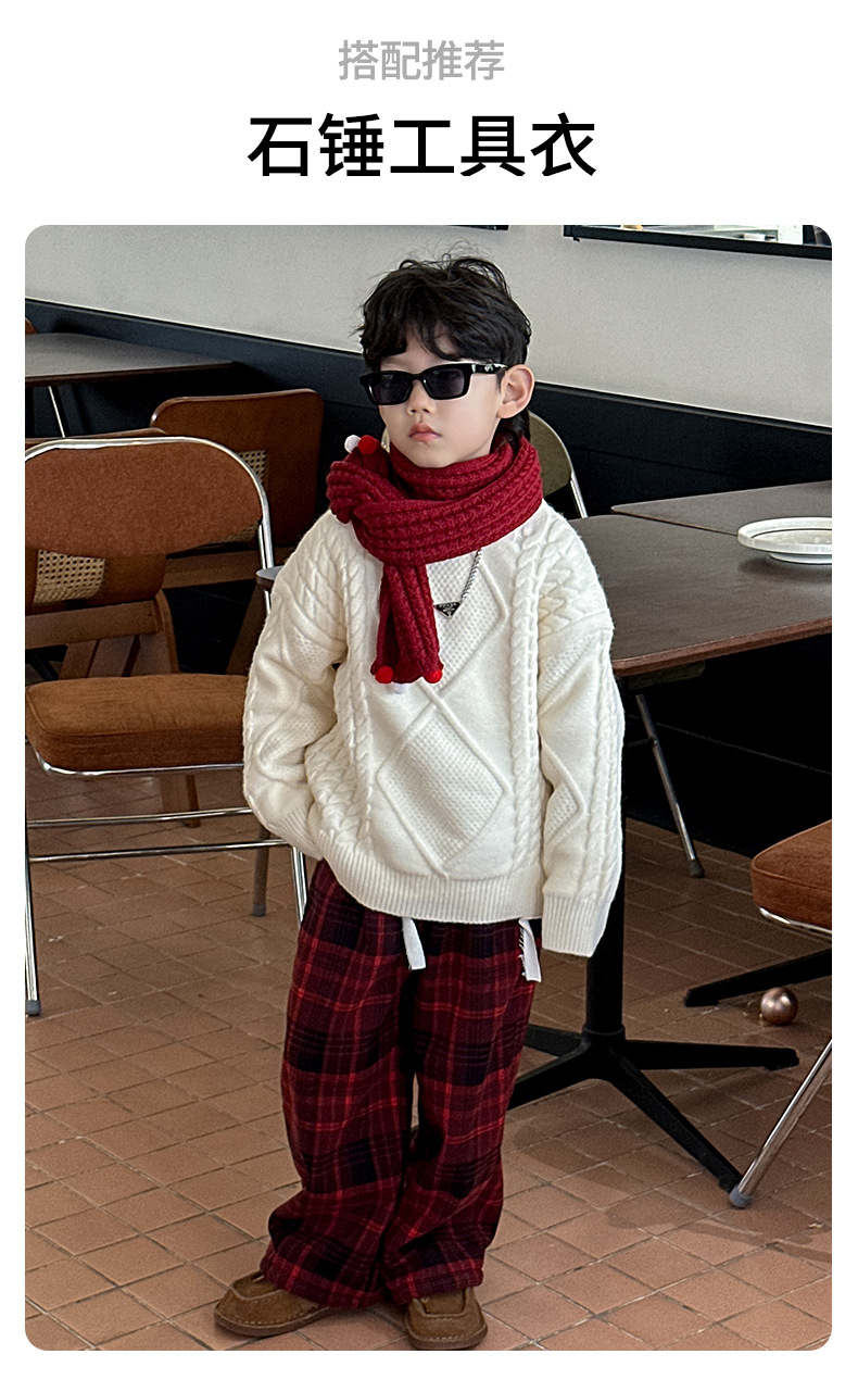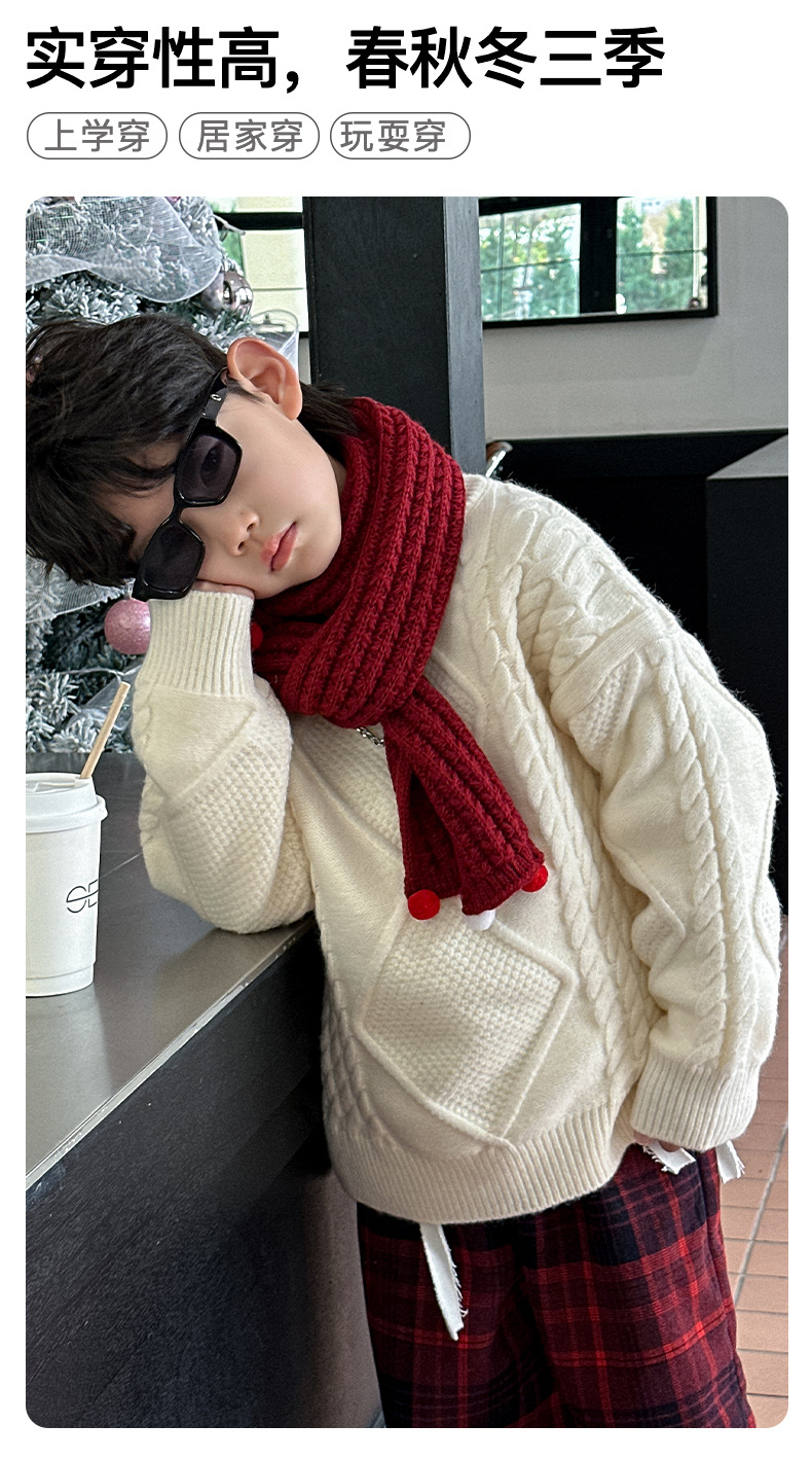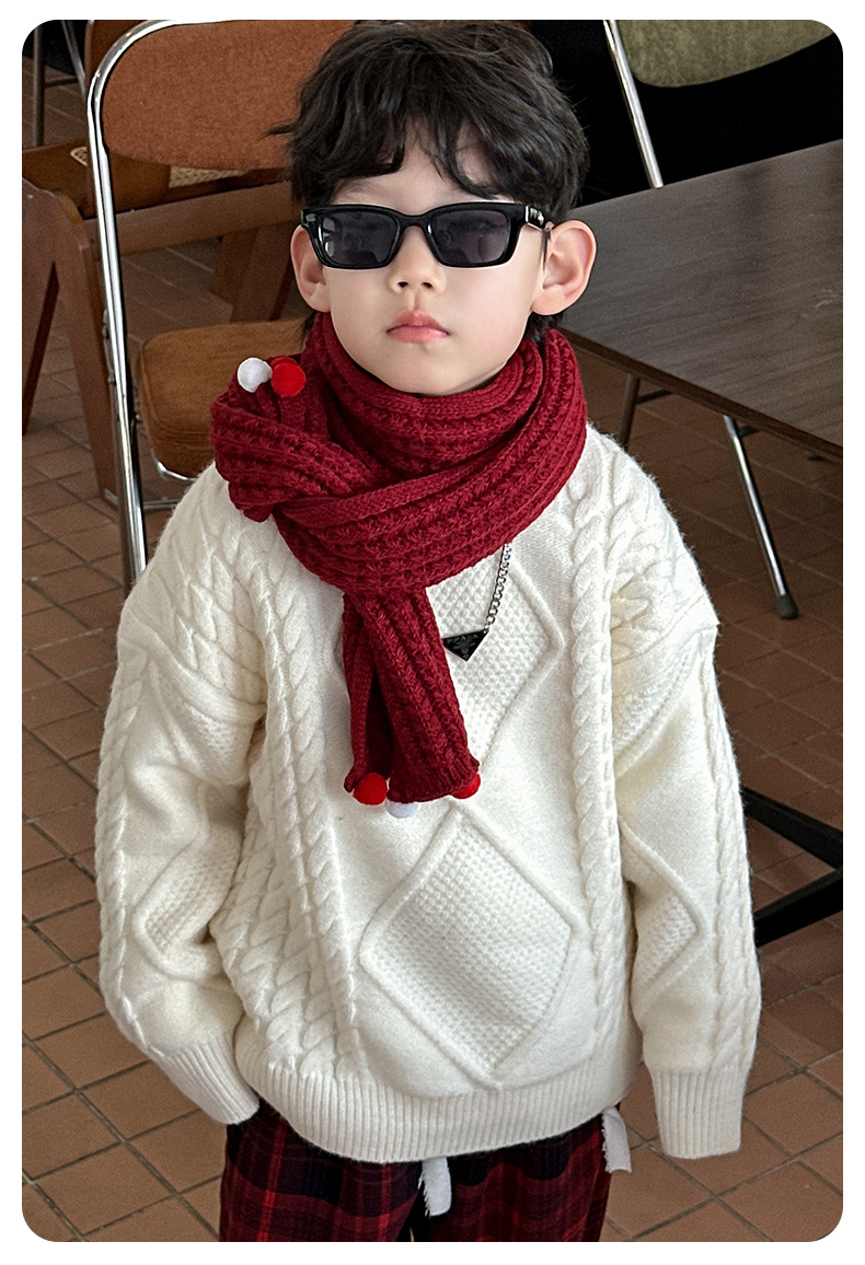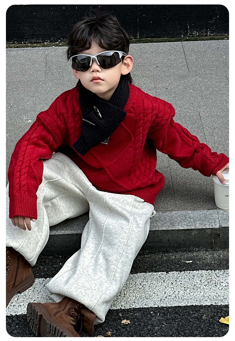 어린이용 두꺼운 보온 스웨터 2024 겨울 신상 한국 스타일 설날 의상, 중소 어린이용 세련된 스웨터, 남아용 긴팔스토어 가기