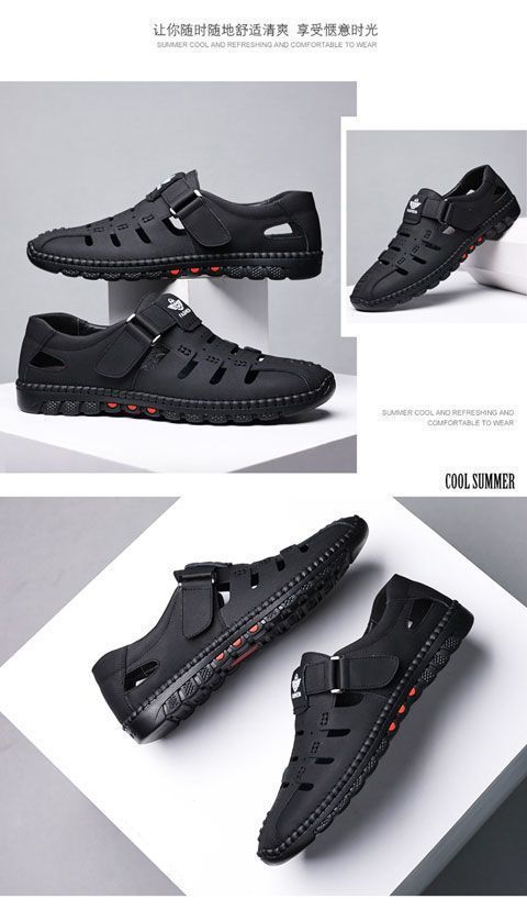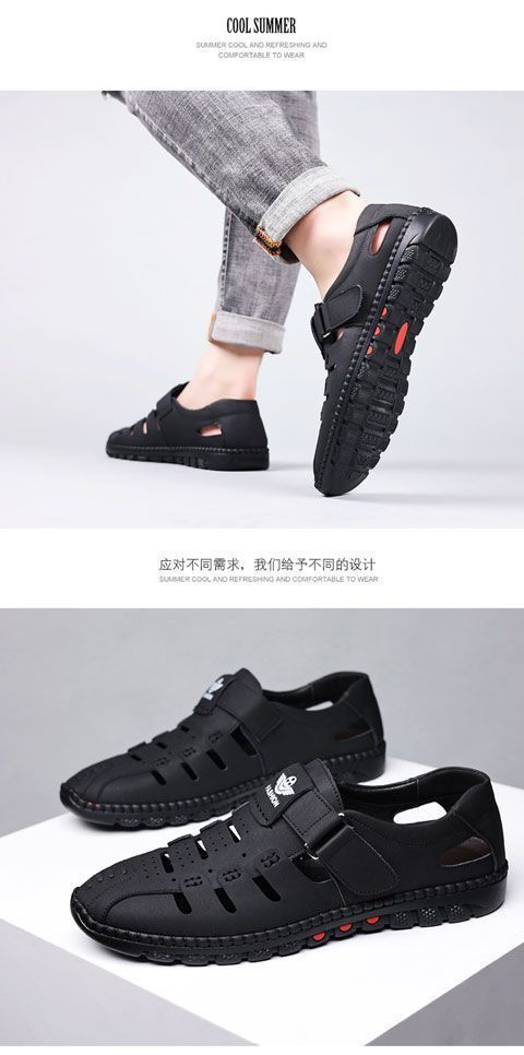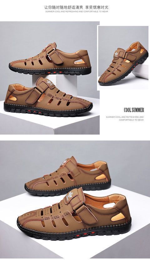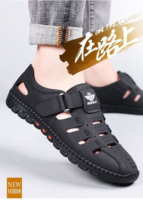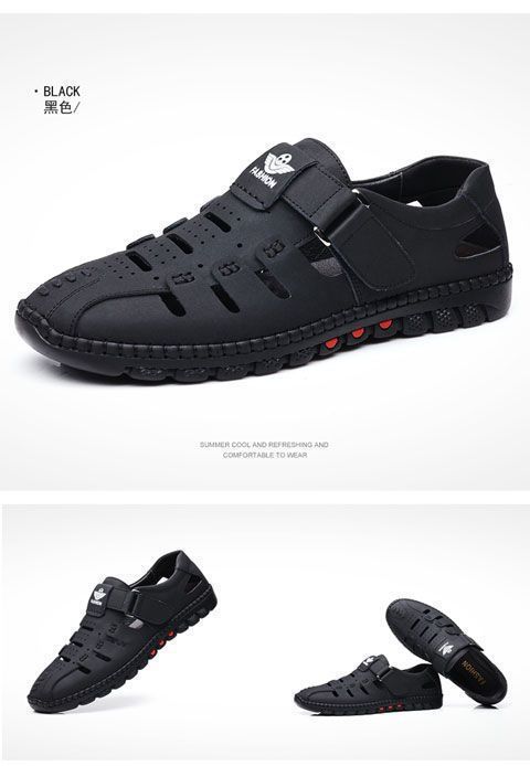 화이트 [소가죽] 샌들 남성용 속이 빈 통기성 캐주얼 소프트 안티 슬립 홀 남성용 캐주얼 샌들