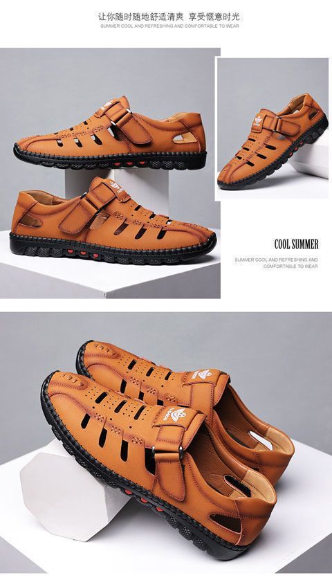 화이트 [소가죽] 샌들 남성용 속이 빈 통기성 캐주얼 소프트 안티 슬립 홀 남성용 캐주얼 샌들스토어 가기