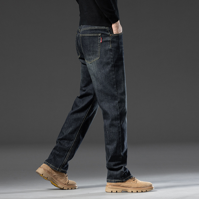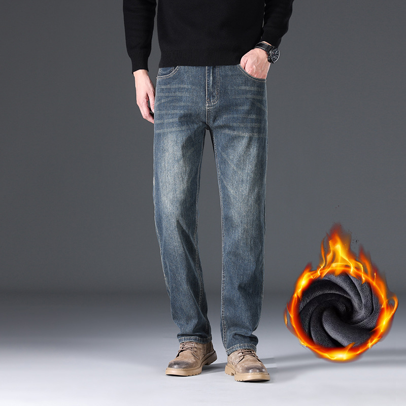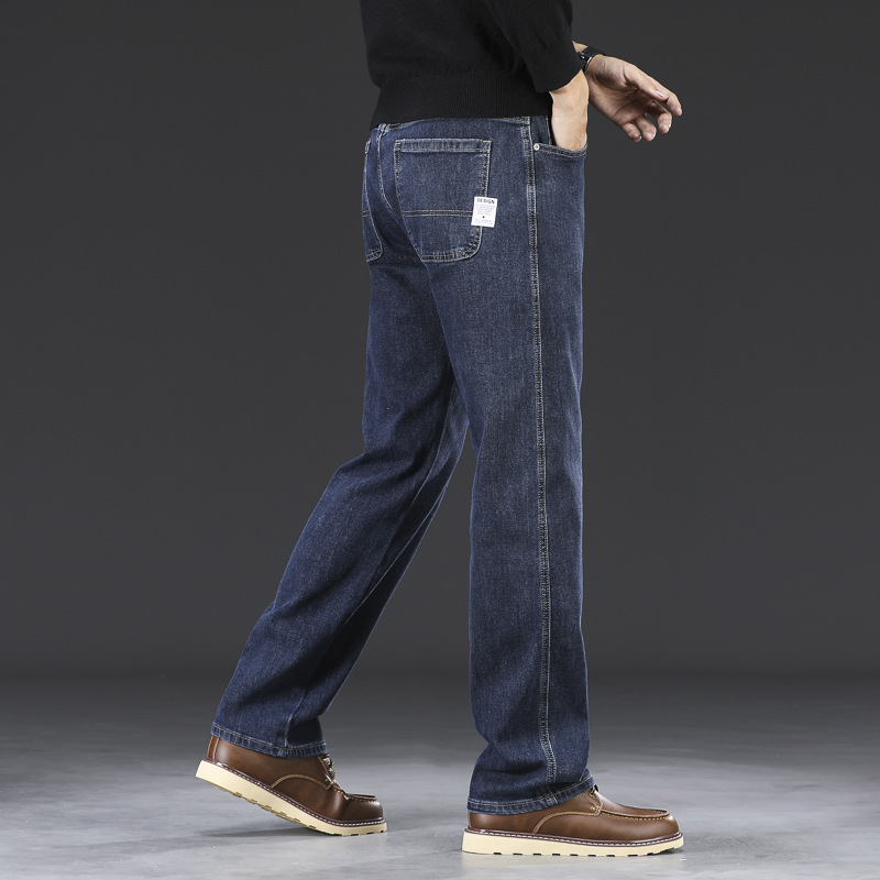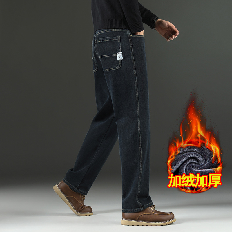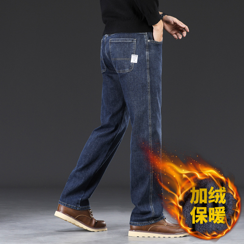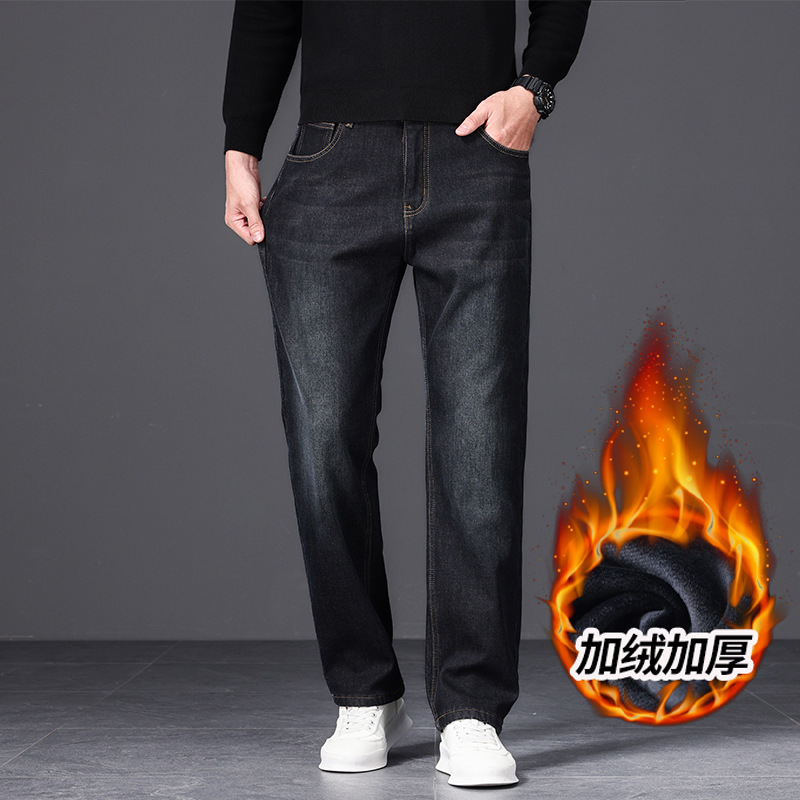 남성용 청바지 가을 겨울 2025 신상 신축성 중년용 루즈핏 스트레이트 와이드 레그 기모 긴바지 신탕 직배송스토어 가기