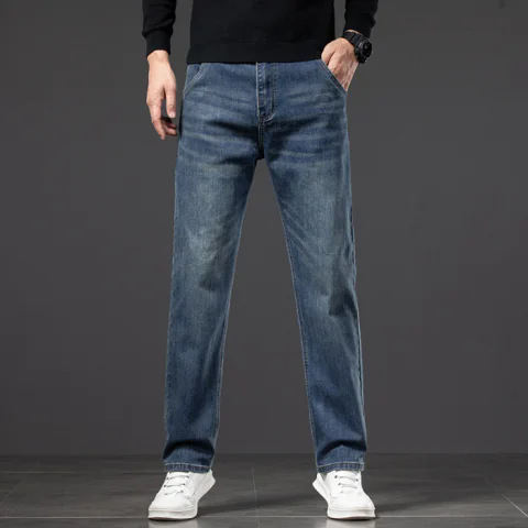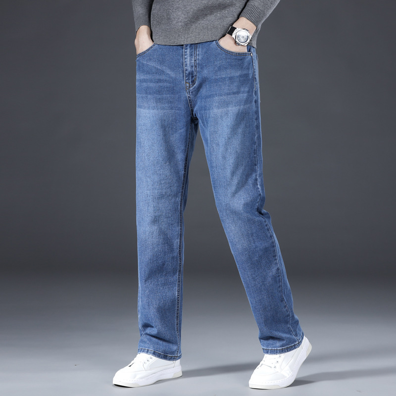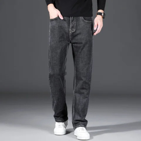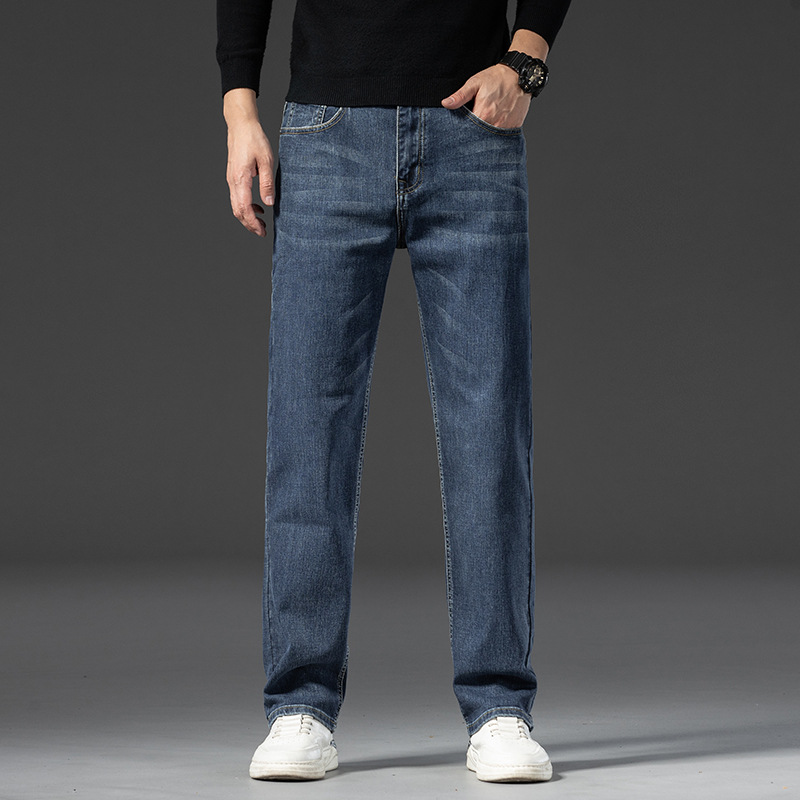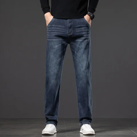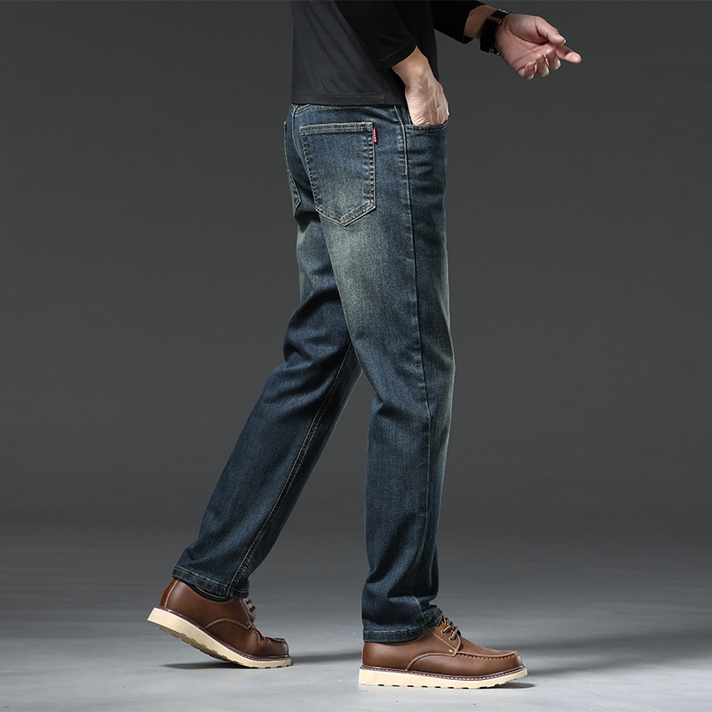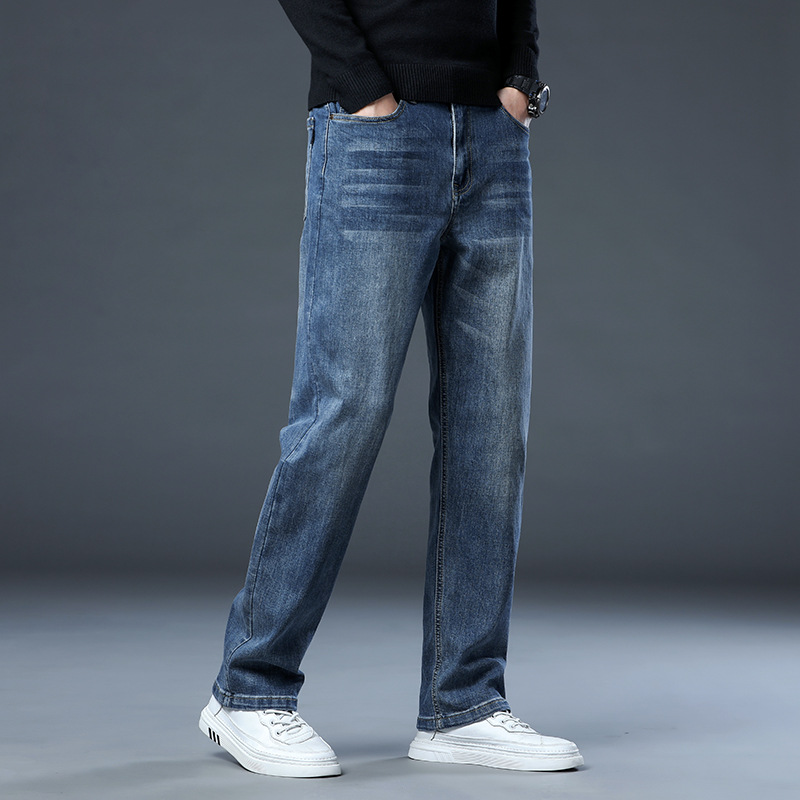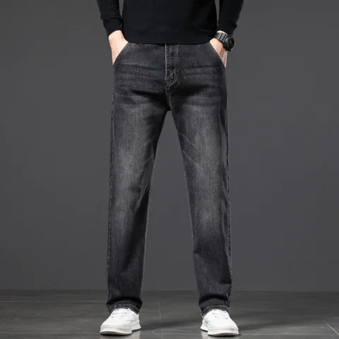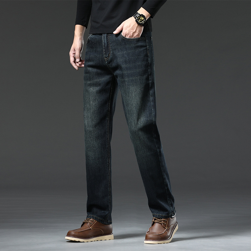 남성용 청바지 가을 겨울 2025 신상 신축성 중년용 루즈핏 스트레이트 와이드 레그 기모 긴바지 신탕 직배송스토어 가기