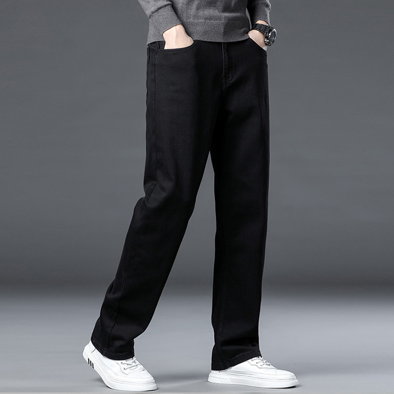 남성용 청바지 가을 겨울 2025 신상 신축성 중년용 루즈핏 스트레이트 와이드 레그 기모 긴바지 신탕 직배송