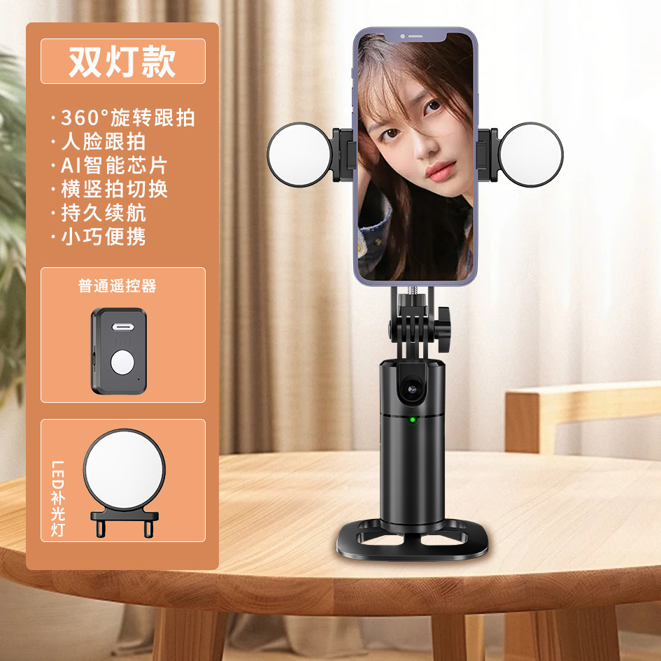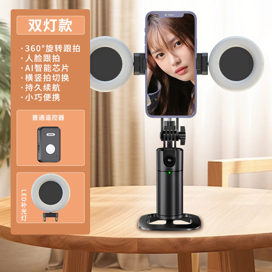 • Q1 스마트 팬/틸트 [Douyin Bluetooth 리모컨 포함] + 작은 원형 조명 2개