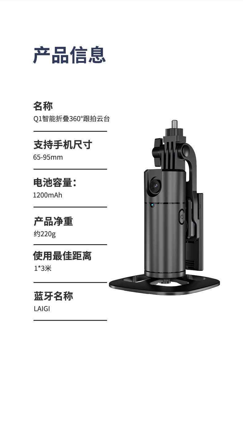 Q1 휴대 전화 후속 Yuntai 지능형 얼굴 인식 추적 라이브 지원 360 완전 자동 후속 안정제
